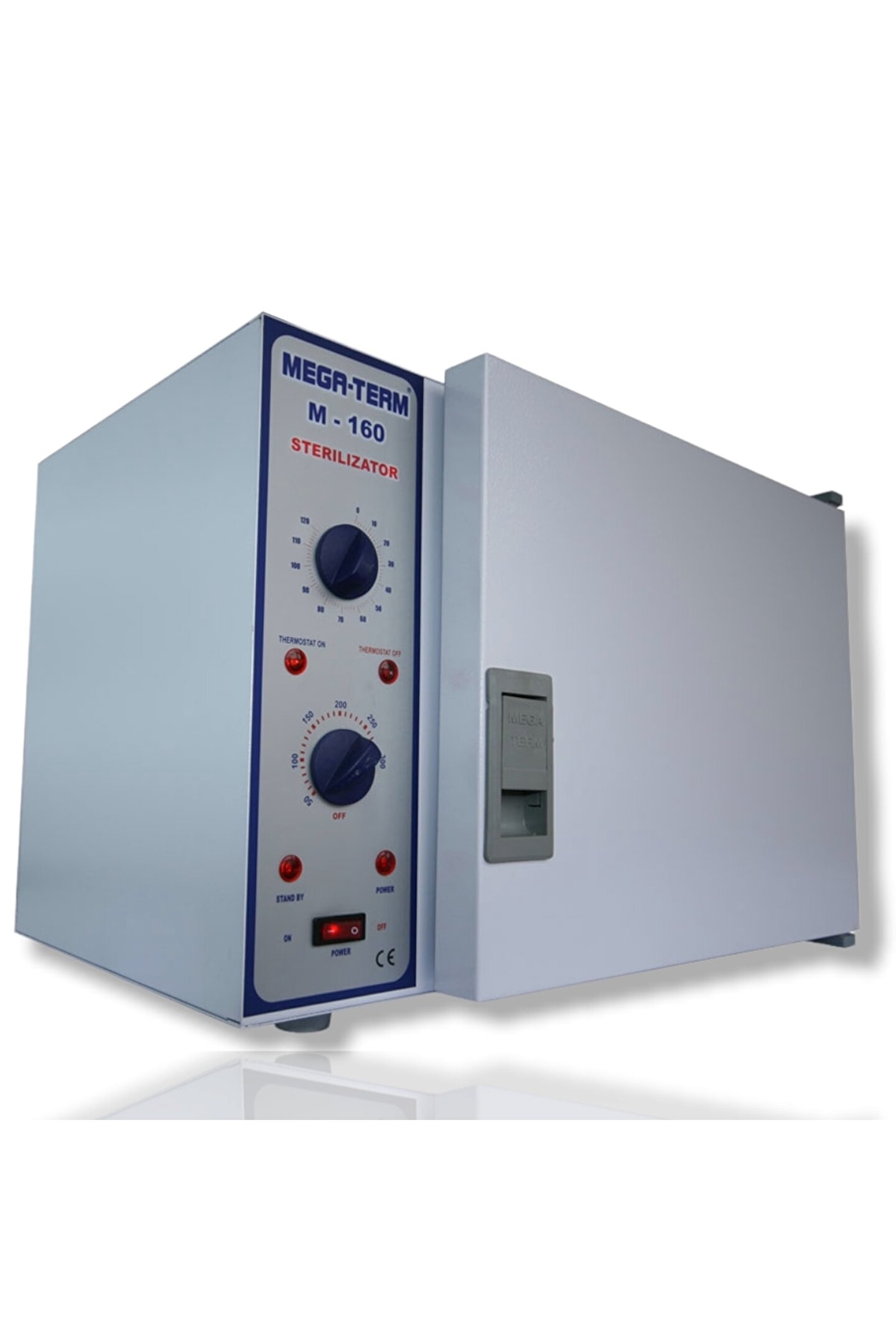 Megaterm m50 5 lt manuel kuru hava sterilizatörü Özellikler termostat : 50 c°; 250 c° ısı hassasiyeti : +/; 5 c° rezistans :500 w iç hacim :5 lt; iç ebatlar yükseklik x genişlik x derinlik : 165 x 165 x 200 mm 2 yıl garantili;