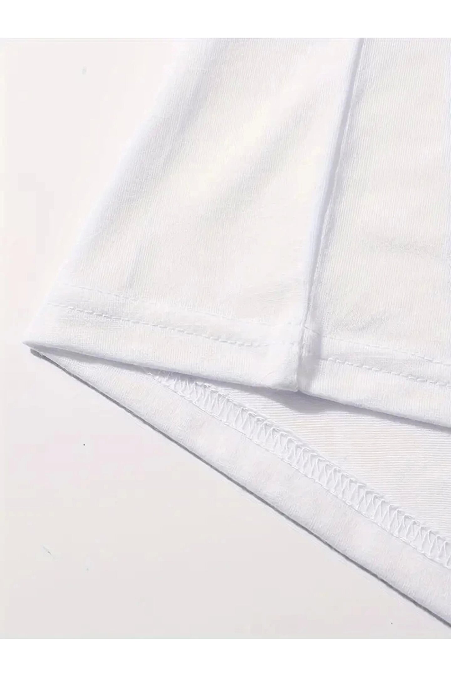 - Rahat kesimi ve düşük omuz tasarımı ile günlük kullanıma uygun, şık bir görünüm sunar.; - Beyaz renk seçeneğiyle kolayca kombinlenebilir ve her ortama uyum sağlar.; - Altın rengi harf baskısı ile dikkat çekici ve modern bir stil oluşturur.; - Kısa kollu yapısı sayesinde mevsim geçişlerinde ve sıcak havalarda konforlu bir kullanım sunar.; - Standart boyu ve oversize kalıbı ile rahat bir oturuş sağlar, hareket özgürlüğünüzü kısıtlamaz.; - Bisiklet yakası ve düz kesim tasarımı ile sade ve şık bir görünüm elde edersiniz.; - Ekolojik baskı tekniği kullanılarak üretilmiş olup, çevre dostu bir seçenektir.; - 2 iplik dokuma tipi ile dayanıklılık ve uzun ömürlü kullanım vaat eder.; - Bağlama detayları ile kişisel tarzınıza göre ayarlama imkanı sunar.; - Pamuklu materyali sayesinde cildinize nefes aldırır ve gün boyu rahatlık sağlar.; - Cepsiz tasarımı ile minimalist bir görünüm kazandırırken, pratiklikten ödün vermez.