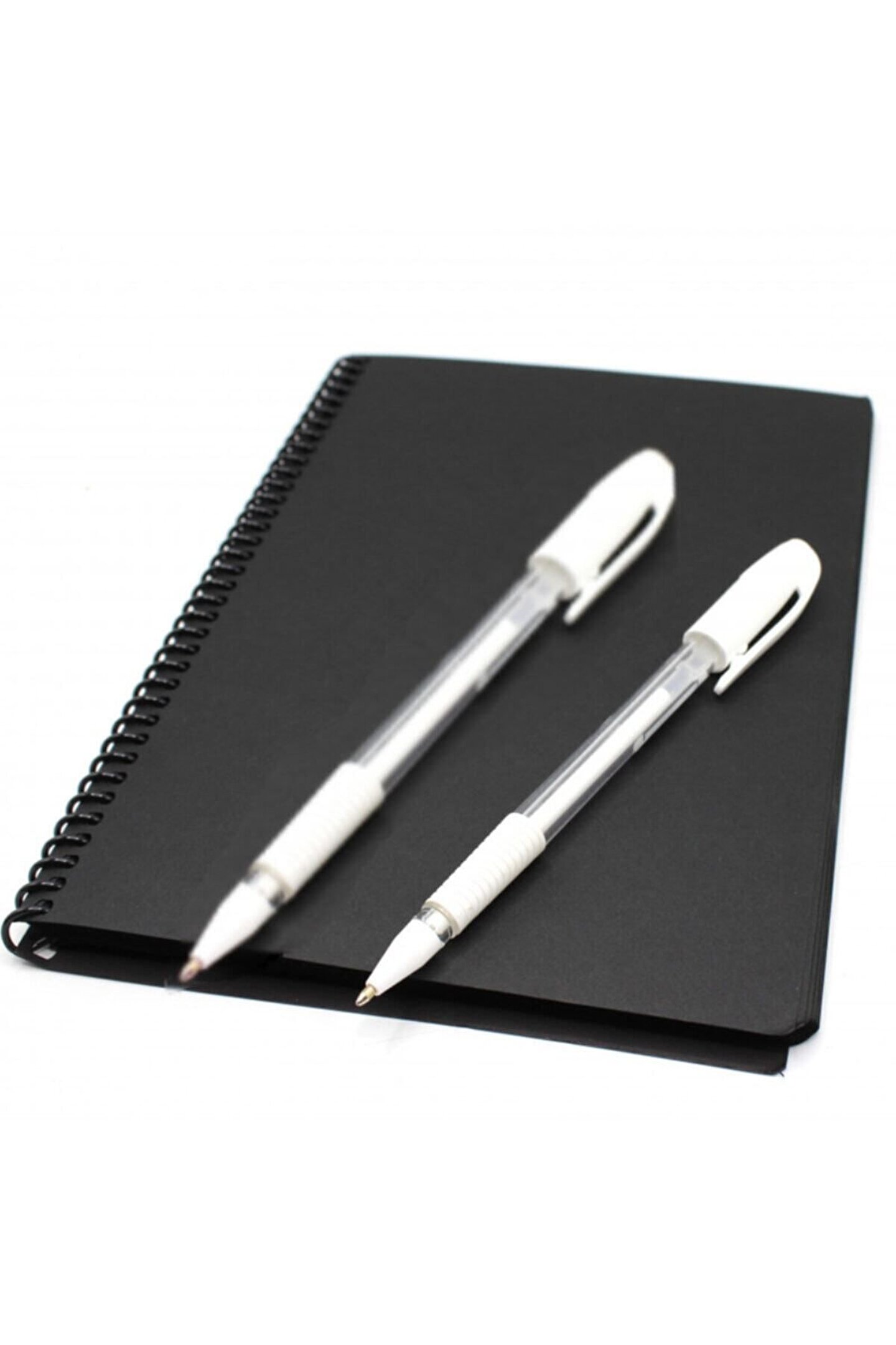 40 Sayfa 17x24 Cm Siyah Defter Ve 2 Adet Beyaz Kalem Side