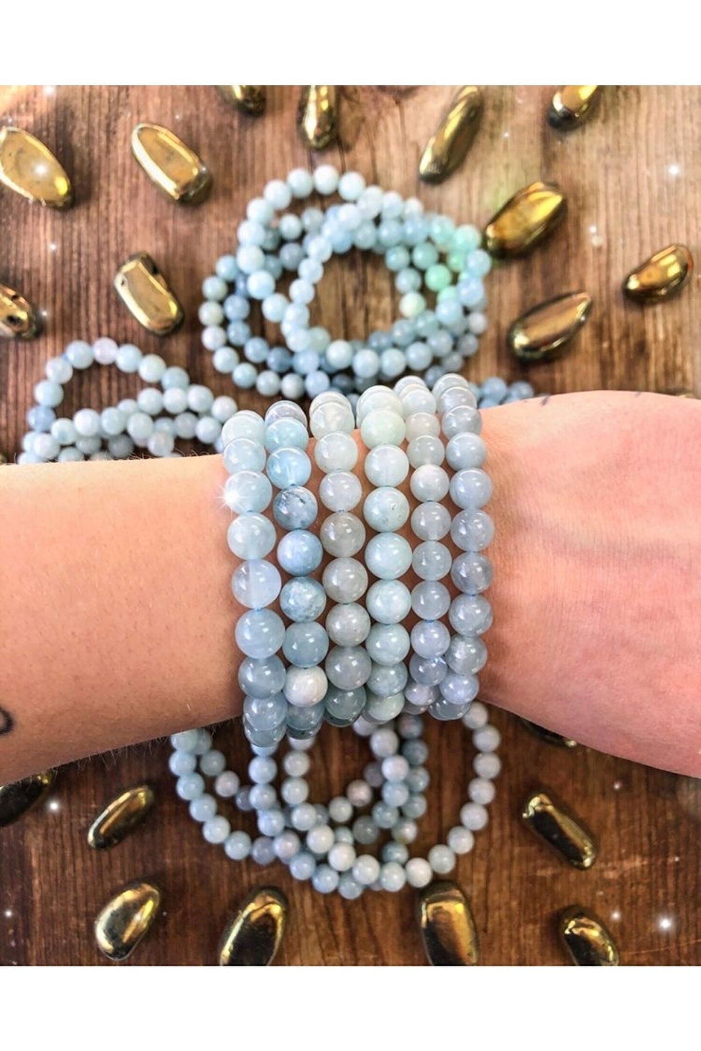 - Doğal taş bileklik, şıklığınızı tamamlayacak zarif bir aksesuardır; - Akuamarin taşı, benzersiz renk tonları ve parlaklığı ile göz alıcı bir görünüm sunar; - Doğal taş kullanımı sayesinde her bileklik benzersiz ve otantik bir dokunuş taşır; - Akuamarin taşı, enerjiyi dengelemeye yardımcı olur ve pozitif bir etki yaratır; - Bijuteri bileklik, günlük kullanım için idealdir ve her türlü kıyafetle uyum sağlar;