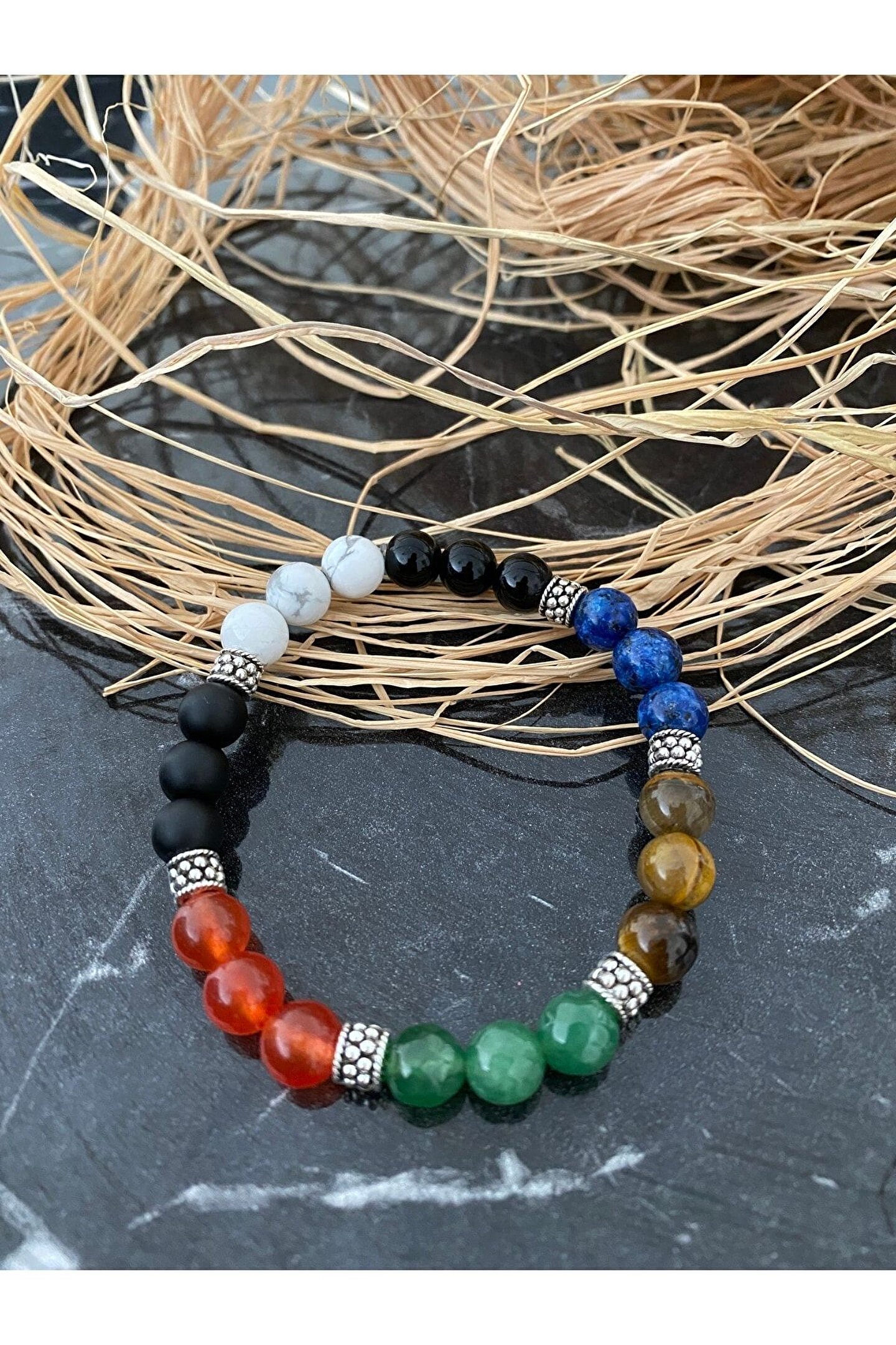 Doğal taş bileklik, her biri benzersiz ve eşsiz bir dokunuş sunar; 7 çakra taşı bileklik, enerji dengesi ve kişisel gelişim için ideal bir aksesuardır; Unisex tasarımı ile hem kadınlar hem de erkekler tarafından rahatlıkla kullanılabilir; Doğal taş materyali sayesinde, bileklik hem şık hem de doğayla iç içe bir görünüm sağlar;