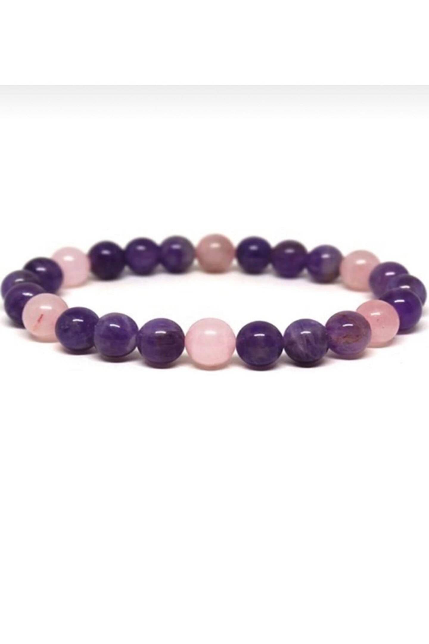 Doğal taş pembe kuvars ametist bileklik, şıklığınızı tamamlayacak zarif bir aksesuardır; Pembe kuvarsın doğal tonları, bilekliğinize sıcak ve huzurlu bir görünüm kazandırır; Ametist taşı, enerjiyi dengelemeye yardımcı olur ve stresle başa çıkmanıza destek olur; Doğal taş materyali ile her parça benzersizdir ve doğanın güzelliklerini bileğinizde taşımanızı sağlar;