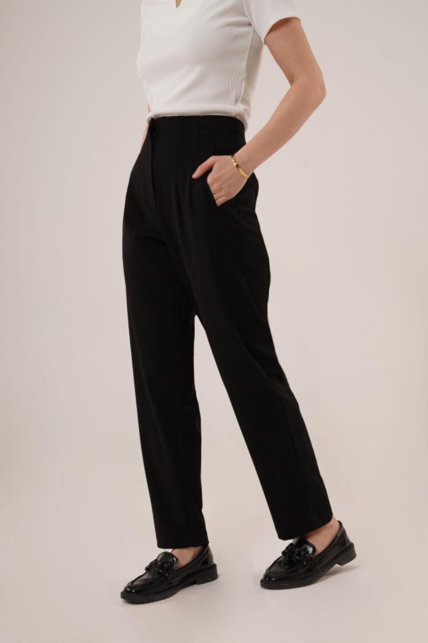 Melek Moda Gökyüzü Moda Çift Pens Detaylı Siyah Pantolon