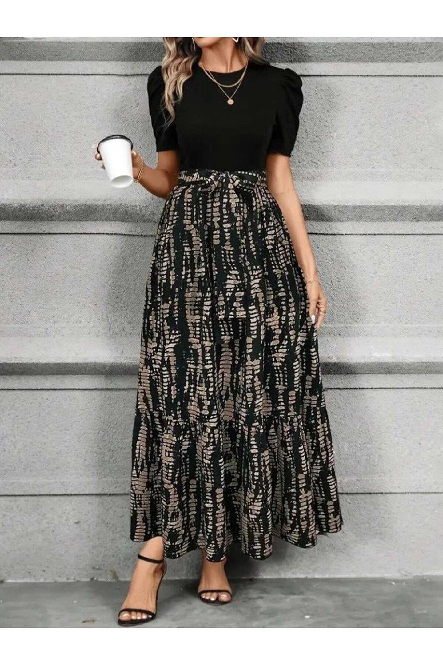 Melek Moda Kadın Kısa Kollu Bisiklet Yaka üst Ithal Krep Alt Süprem Maksi Boy Elbise