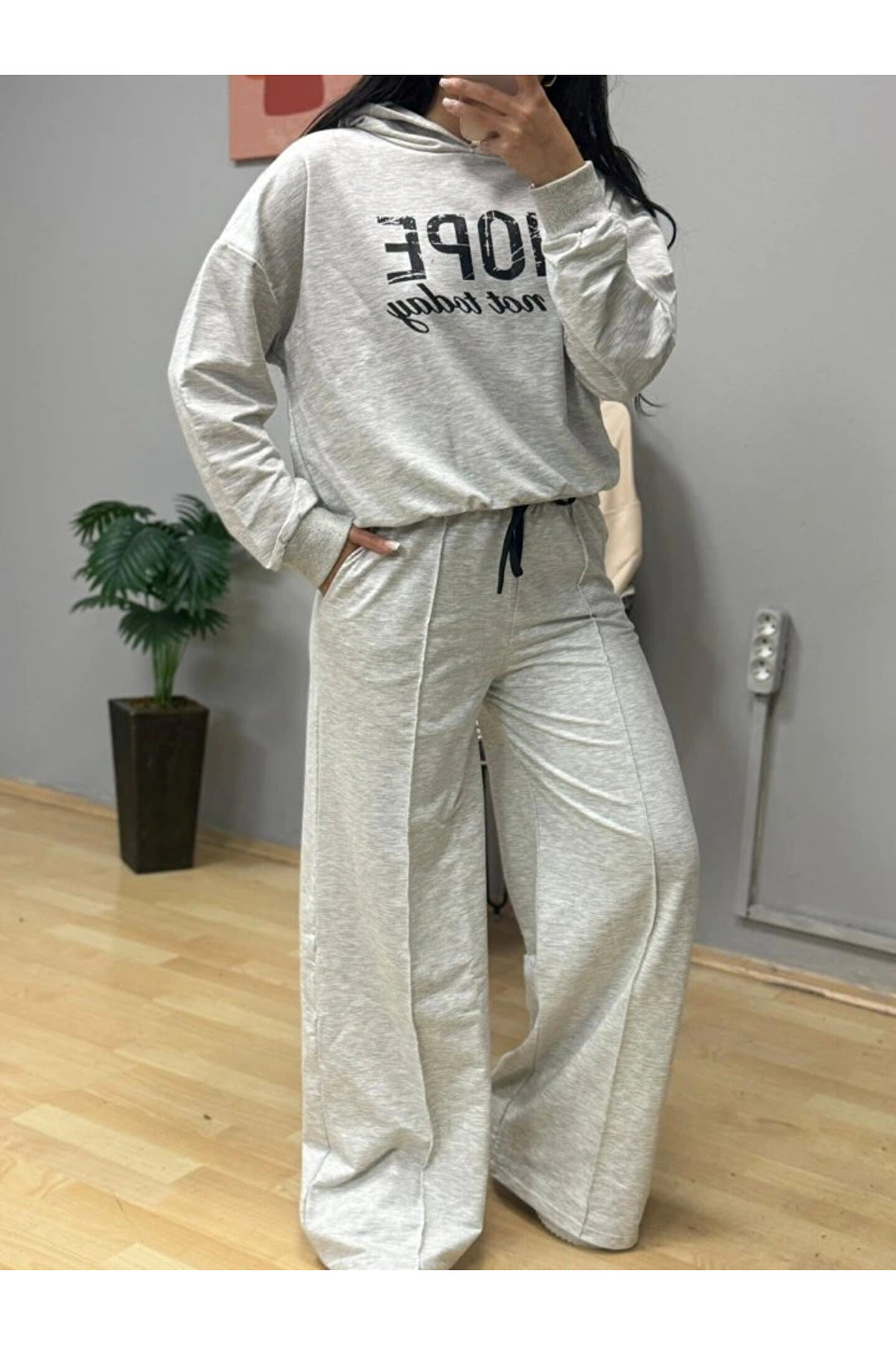 Kadın Uzun Kollu Nope Baskılı Beli Ribanalı Ikili Takım