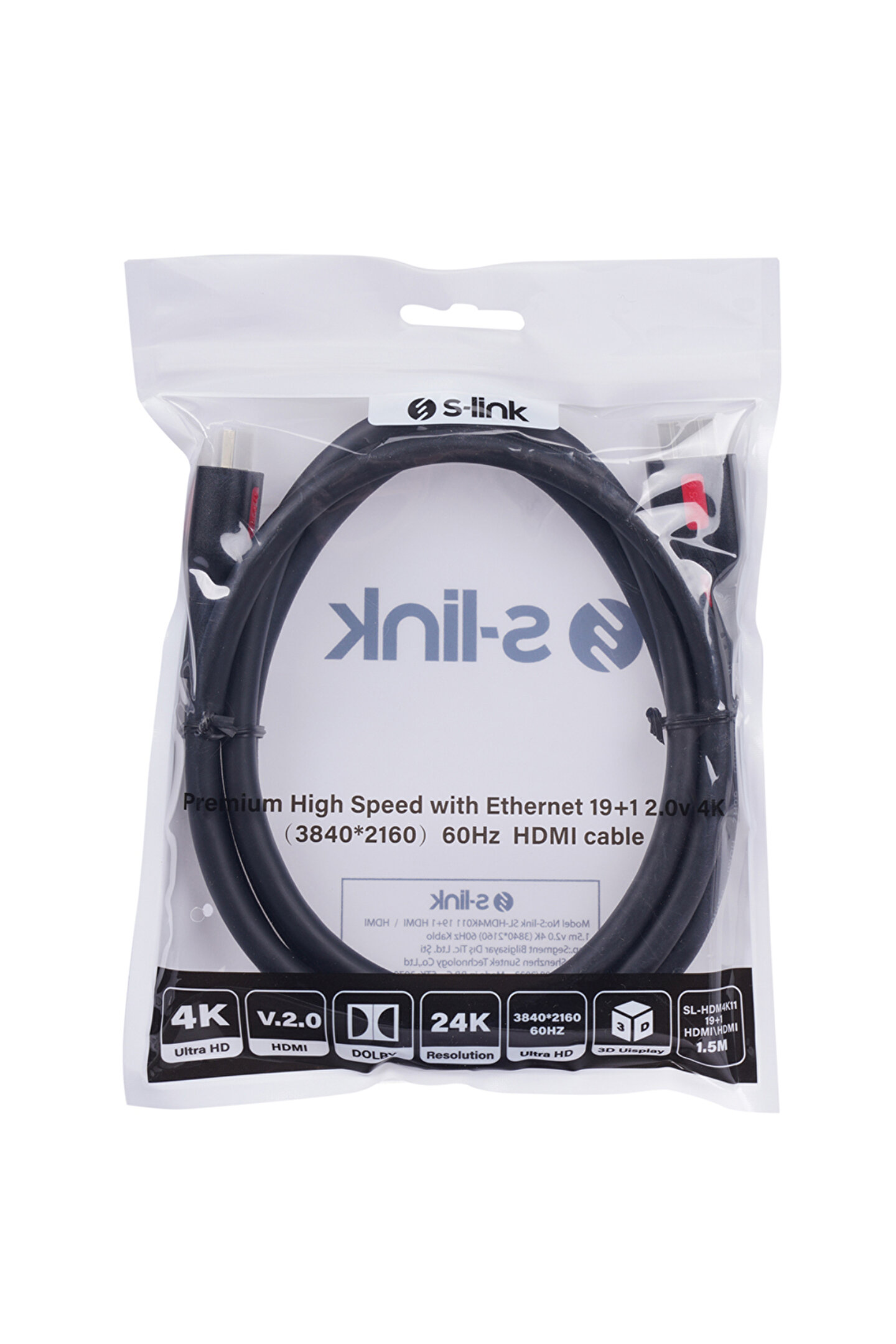sl-hdm4k011 19+1 hdmi to hdmi 1.5m v2.0 4k (3840*2160) 60hz kablo