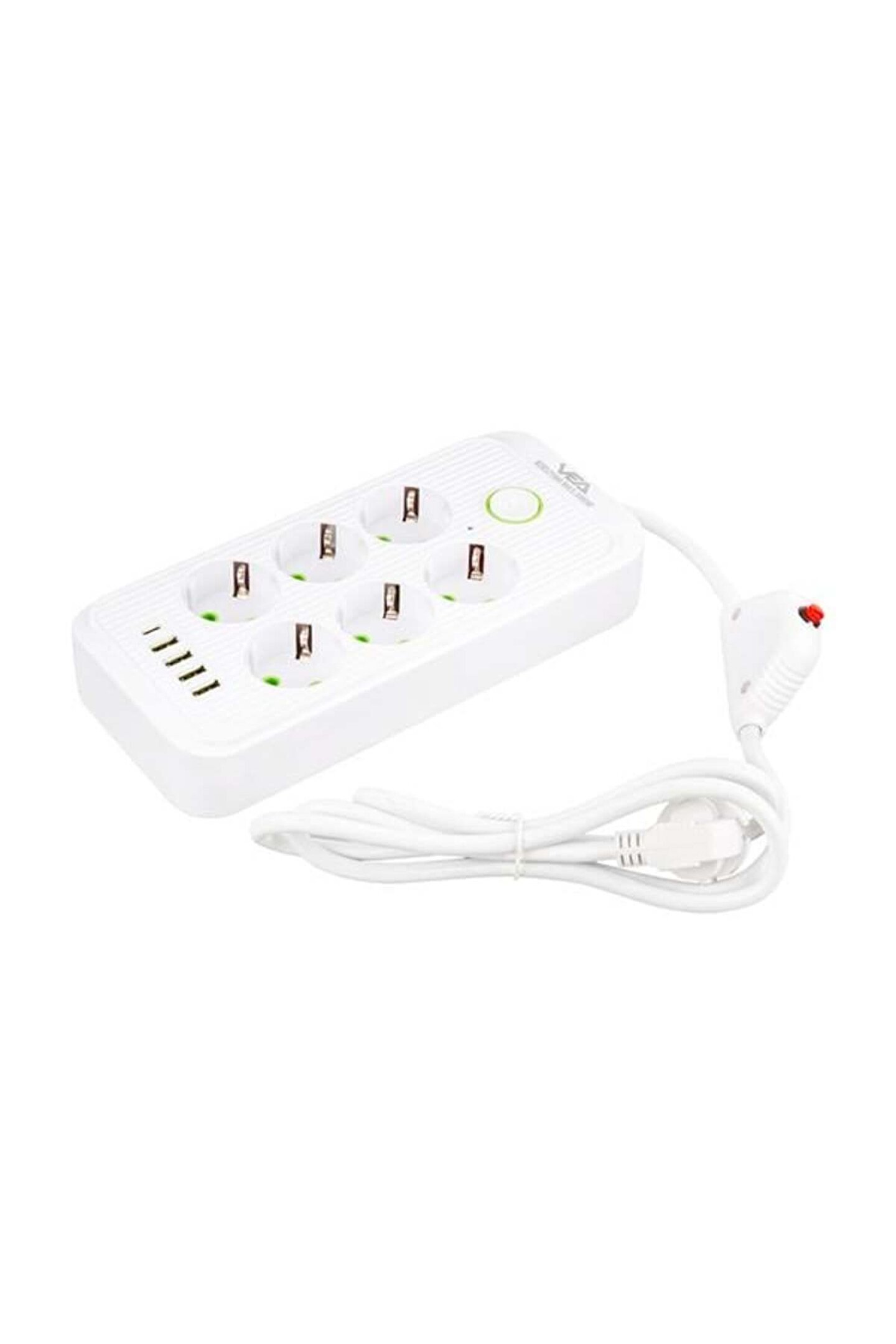 MELFSHOP M3lfs- Vea Va-21564 6li 1.5 Metre Kablolu 4 Usbli Beyaz Akim Korumali Priz