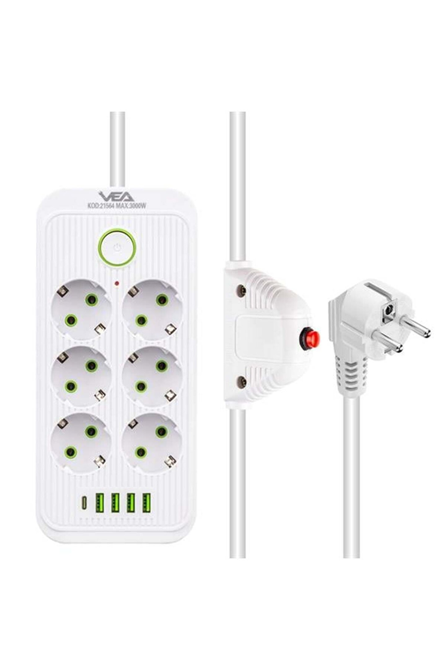 vea va-21564 6li 1.5 metre kablolu 4 usbli beyaz akim korumali priz