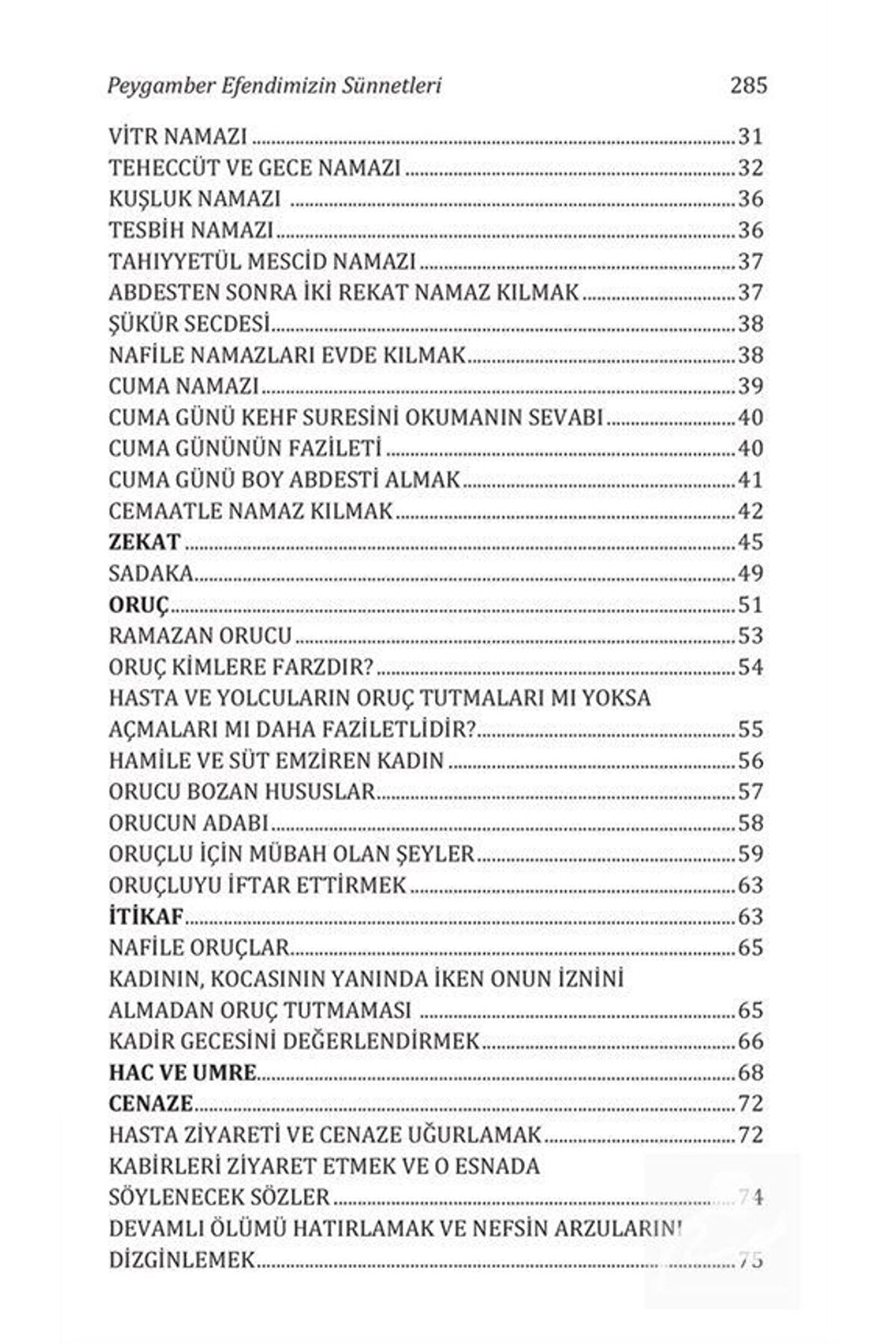 Ayet ve Hadislerle Peygamber Efendimizin (s.; a.; v.; ) Sünnetleri Selahattin Doğan / Mercan Kitap Basım Yılı: 2013; Sayfa Sayısı: 288; Kağıt Türü: Kitap Kağıdı; Ebat: 13,5 x 21; Dil: Türkçe; Cilt Durumu: Karton Kapak; Yazar: Selahattin Doğan; "Peygamber size ne getirdi ise onu alın; size de neyi yasak etti ise ondan uzak durun.; " (Haşr:7) Allah Rasûlü sallallahu aleyhi ve sellem şöyle buyuruyor: "Size iki şey bırakıyorum; bunlara sarıldığınız müddetçe asla sapıklığa düşmezsiniz.; 0 da Allah'ın kitabı Kur'an ve Rasulü'nün sünnetidir.; " (İmam Malik el-Muvatta 2/899 Ha-kim 1/93) Allah'a hamdu sena ederiz Rasülü Muhammed aleyhisselam'a onun tertemiz ailesine ashabına ve onların sünnetine tabi olanların üzerine kıyamete kadar salatu selam olsun.; Adil ve Hakim olan Allah'ın bir topluma gönderdiği belalar onların isyanları ile Allah ve Rasulü'nün emirlerine muhalif davranmaları yüzündendir.; Özellikle halkı Müslüman olan ülkelerin fertleri Kur'an ve sünnetten uzaklaşıp şirk düzenlerinin hakimiyetinden dolayı bir çok fitne ve zorluklarla yüzyüzedir.; Neticede ister itikadi ister amelî olsun kitap ve sünnetten uzaklaşma en korkunç bir şekliyle bugün gözler önündedir.; İslam sadece namaz ve oruçtan ibaretmiş gibi kabul edilmektedir.; Sünnetin ise; yerini bid'at ve hurafeler almış sünnete uygun İslamî bir yaşayış tarzı üzerine Avrupai bir yaşayış tarzı her yönüyle tercih edilmiştir.; Nüfusun büyük çoğunluğunu teşkil ettikleri ülkelerde müslümanlar kendi inançlarına göre yaşayamazlar.; Sebebi ise islam'ın hakim olmayışı küfür rejiminin tağutun müslümanlar üzerindeki hâkimiyetidir.; Buna da fırsat veren müslümanlann bizzat kendilerinden başkası değildir.; Diğer bir etkene gelince; müslümanların çeşitli fırkalara ve görüşlere ayrılmalarında ihtilaf ettikleri meselelerde îslamî bir tavırla kitap ve sünneti hakem kılmayışlarından dolayıdır.; Dolayısıyla Allah Rasûlü sallallahu aleyhi ve sellem'in bütün insanlara örnek olsun diye ortaya koyduğu tertemiz sünneti ihmal ve gözardı edilmekdedir.; Evet bugün müslümanların zafere ulaşamamalarının en büyük sebebi; islam'dan uzak olmaları nefiscilik taassub söz ve amellerinin bir olmayışından ihtilaf ve anlaşmazlık anında Kitap ve sünneti hakem tayin etmediklerindendir.; Oysa Allah ve Rasulü birlik ve beraberliği emretmekte açık delil olduğunda ona tâbi olmayı kesinlikle ayrılığa düşmemeyi emretmektedir.; Şimdi bu gerçeğin ışığı altında ümmete düşen; Kur'an ve sünnete ittibaın gerekliliğini görev bilip Rabbani kaynak olan Allah'ın kitabına ve Rasulü'nün sünnetine dönmesidir.; Kurtuluş ancak Kitap ve sünnetle amel etmemizle mümkündür.; Ben gücümün yettiği kadar ıslahtan başka bir şey arzu etmem.; Benim başarım ancak Allah'ın yardımıyladır.; Ben yalnız O'na güvenip O'na dayandım ve yalnız O'na dönerim.; " (Hud Süresi: 88) Tevfik ve hidayet Allah'tandır.; Selam; Kur'an ve sünnete tabi olanların üzerine olsun.; Selahattin Doğan