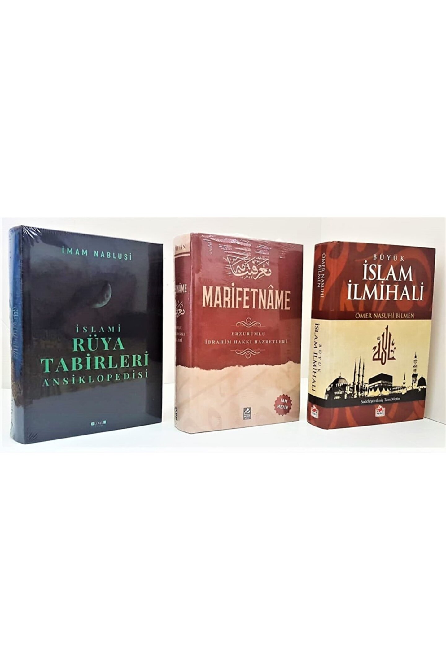 İslami Rüya Tabirleri / Marifetname / Büyük İslam İlmihali Ciltli MERCAN KİTAP (Erzurumlu İbrahim Hakkı/İmam Nablusi/Ömer Nasuhi Bilmen Marifetname (Ciltli) Tam Metin Renkli Erzurumlu İbrahim Hakkı, Mehmet Tamer Tutmaz Mercan Kitap Mârifetnâme tasavvuf ahlâk kelâm ve fıkıh gibi ilimlerle aritmetik geometri astronomi fizyoloji ve psikoloji gibi disiplinlere dair dönemindeki bilgi ve kültürü kuşatan ansiklopedik nitelikte bir eserdir. Klasik felsefe ve tasavvuf düşüncesindeki insanı küçük âlem kabul eden anlayışa İbrahim Hakkı da büyük önem verir. Bütün mutasavvıflar gibi onun için de hayatın en yüksek gayesi marifet marifetin en yüce derecesi mârifetullahtır. Mârifetullahın anahtarı kendini bilmek kendini bilmenin anahtarı da âlemi bilmektir. Allah bütün âlemi insanın buyruğuna vermiş insanın bedenini de ruhuna itaat ettirmiştir ki insan kendi bedenine organlarının oluşumuna güçlerinin tertibine bakarak aşağı ve yukarı âlemde bunun benzerlerini bulup aynı düzenin orada da sürdüğünü görsün; özellikle kendi ruhunun bedenini yönetmesi gibi Allah'ın da evren üzerinde tasarrufta bulunup onu yönettiğini anlasın buradan hareketle Allah'ın fiillerine ve sıfatlarına vâkıf olarak sevgisini ve kulluğunu O'na yöneltsin ve böylece irfan ehline katılsın. İbrahim Hakkı bu gayelere ulaşmak için sahih bir itikad ve düzenli ibadete ihtiyaç bulunduğunu önemle belirtmiştir. Ona göre ebedî kurtuluşu kazanmanın tek şartı Kitap ve Sünnetle amel etmektir. Allah dostlarının hallerine ve kemallerine ulaşmanın yolu onların yolunu izlemekten geçer. Büyük İslam İlmihali /Sadeleştirilmiş Tam Metin Ömer Nasuhi Bilmen Merve Yayınları İslami Rüya Tabirleri Ansiklopedisi İmam Nablusi Cümle Kitap Türkiyede ilk kez basılan Rüya Tabirleri Ansiklopedisi daha sonra basılan eserlerin kaynağı olup ya bu eserden kopya edilmiş yada da bu eserden türetilmiştir. Rüyanın mesaj olması durumundan doğru mesajın algılanması esastır. Bu anlamda incelediğiniz eserin önemi gün yüzüne çıkmaktadır. Rüyalar üç kısımdır.; Birincisi kişiyi korku umutsuzluk ve hüsrana düşürmek için şeytan tarafından gelen rüyalar.. Bunlar dikkate alınmaması bir başkasına anlatılmaması görüldüğünde de Allah'a sğınılması gereken rüyalardır. İkincisi uyanıkken meşkul olduğumuz şeylere ait rüyalardır. Bu rüyalar kişinin beynindeki bilgilerin ve yaşadıklarından kazandığı ivme ile mizacına uygun kuruntu ve hayallerdir. Üçüncüsü Allah'ın izni ile görülen amacı kişiye müjde ya da uyarı niteliğinde olan mesajlardır. Bu mesajlardaki asıl amaç kişiye güven ve huzur vererek kişinin Allahla ilişki kurmasını sağlamaktır. Meteryalistlerin söylediği gibi rüya sadece alt beyindeki bilgilerin rüyaya yansıması olsaydı kişi daha önce hiç görmediği bilmediği ve gitmediği bir yere gitmesi ya da kişilerle tanışması mümkün olmazdı...