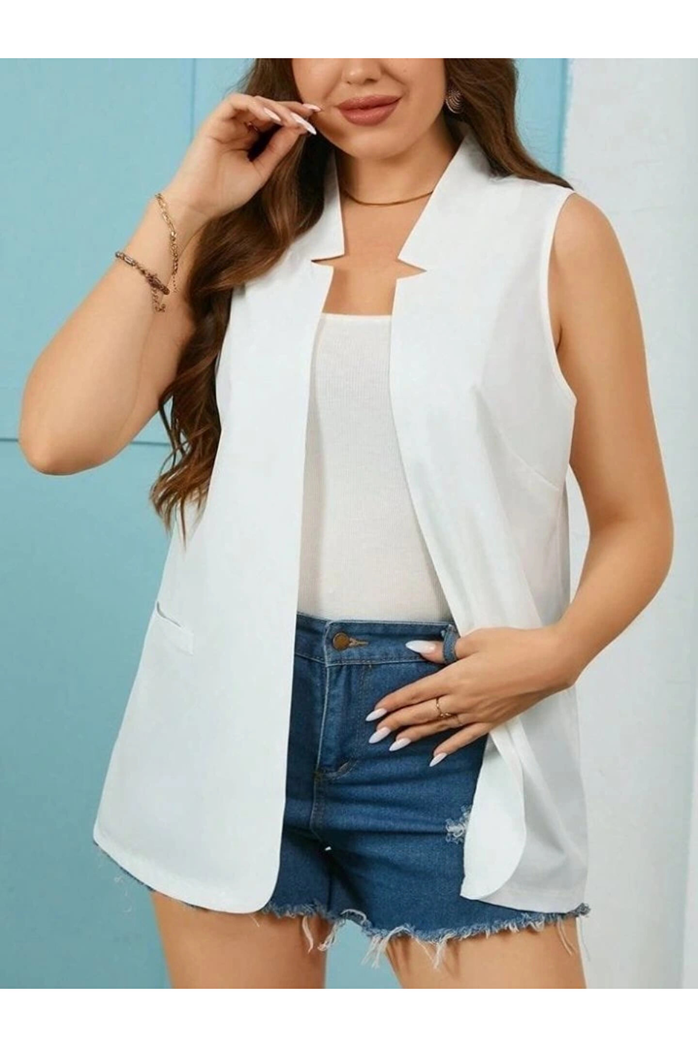 Kadın Duble Yaka Detay Sıfır Kol Ceket Yelek
