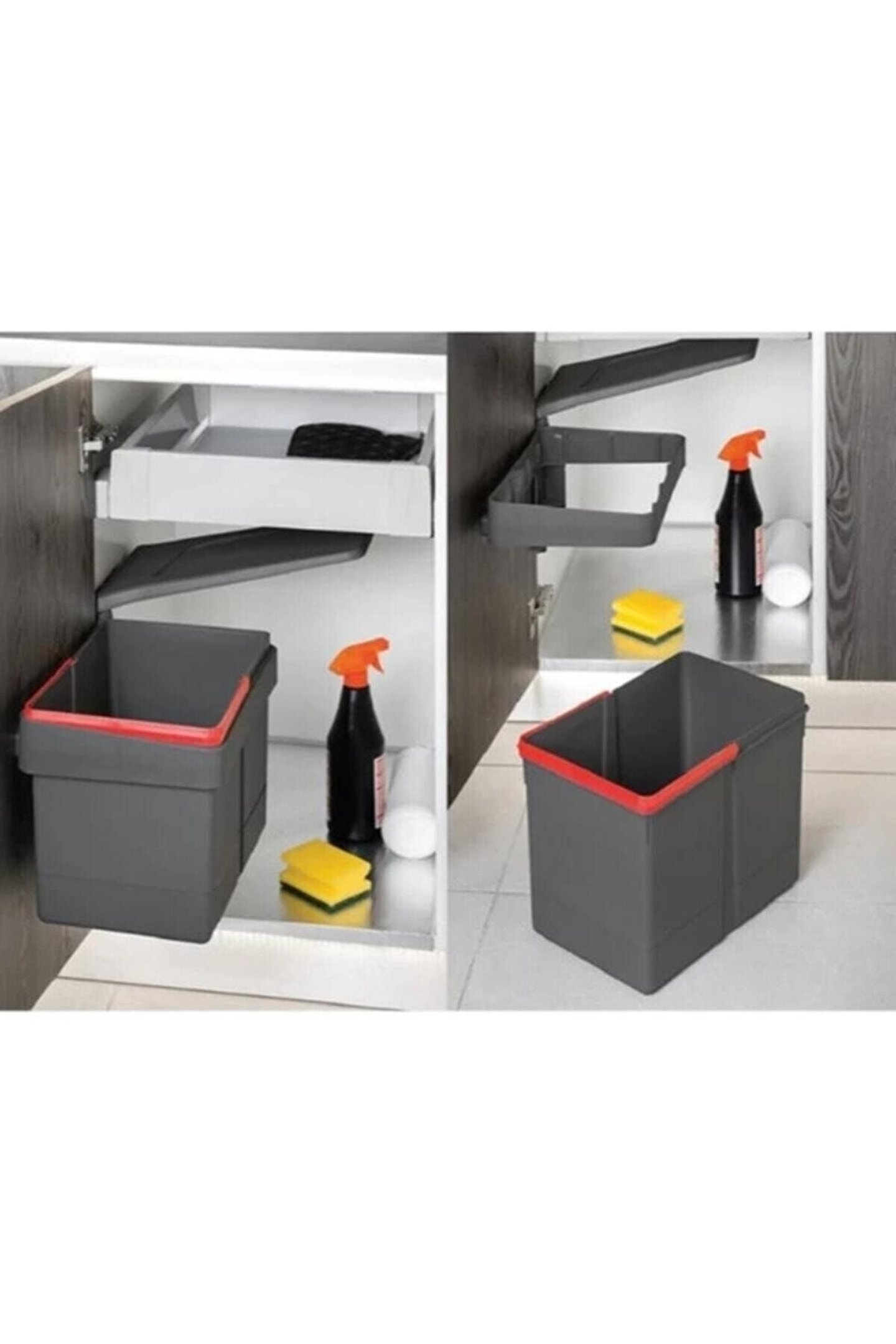 Kokusuz Dolap Içi Çöp Kovası Antrasit 15lt (DOLAP KAPAK GENİŞLİĞİ MİN. 45 CM)