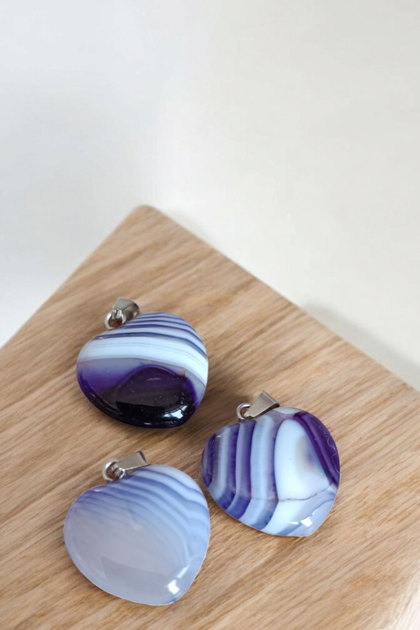 Akik Kolye Mor Beyaz Renk Desenli Kalp Şeklinde Akik Kolye (3 Adet)