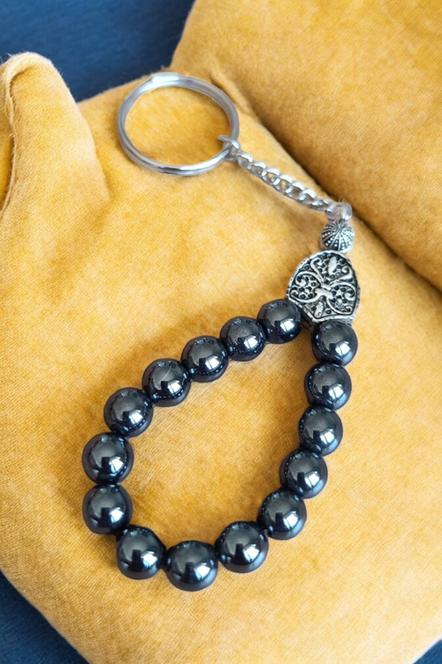 Hematit Anahtarlık Doğal Tesbih Model Doğal Taş Çelik Malzeme Hematit Taşı anahtarlık