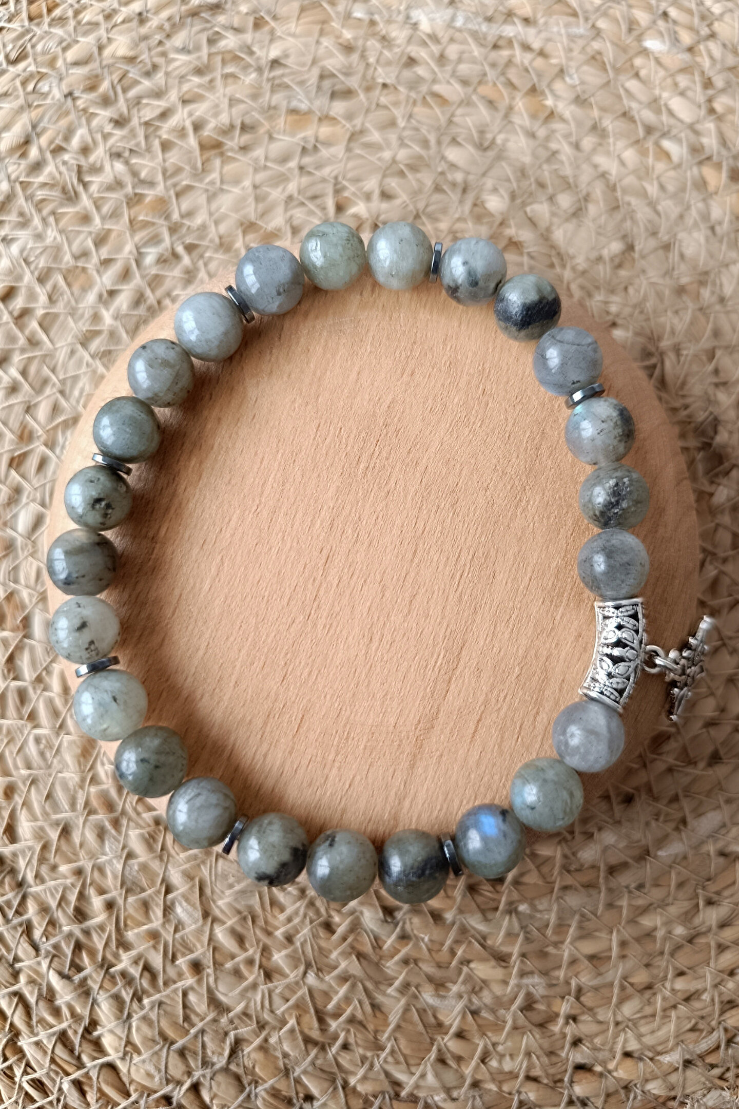 Taşlar : Labradorit Taşı+ Hematit Taşı Kesim: Normal kesim model + Diskkesim Taş boyutu : 8 mm; hematit disk 4 mm Taş sayısı : Bedenlere göre değişim olur Aparat: Metal Desenli Metal: Paslanmaz kaplama metallerdir Görüntü: Resim Ortalama 20; 21 cm göre çekilmiştirbilek yapınıza göre ayarlanacak modelde taş +artı yada; eksi olabilir Bileklik ölçüsü: 16; 17 cm; 18; 19 cm; 20; 21 cm; 22; 23 cm Sargı: 1 mm misina ipi Kalite: Doğaltaşlar Ürün içeriği: bileklik + sertifika +yedek misina Ambalajı: Seçenekleri Mevcuttur Paket içeriği : 1 adet bileklik + 20; 25cm uzunluğunda1 adet yedek misine İp: Esnek uzayıp kısalabilen misina herbileğe uyum sağlar bileği sıkmaz Ayrıca yedek misina gönderilmektedirbileklik bilek yapınıza göre yeniden tasarlayabilirsiniz;