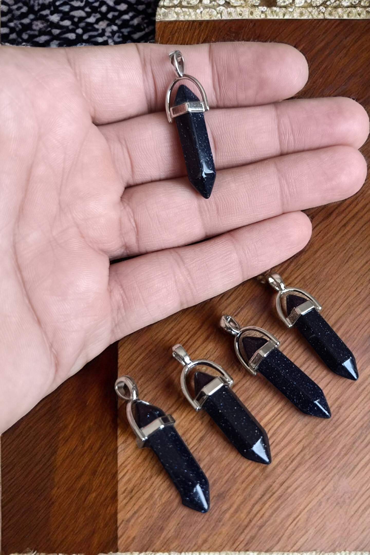 Yıldız Taşı Çivi Model Kolye ( 5 Adet ) Orijinal Doğal Taş Kolye Yıldız Taşı Simli Çivi Kolye