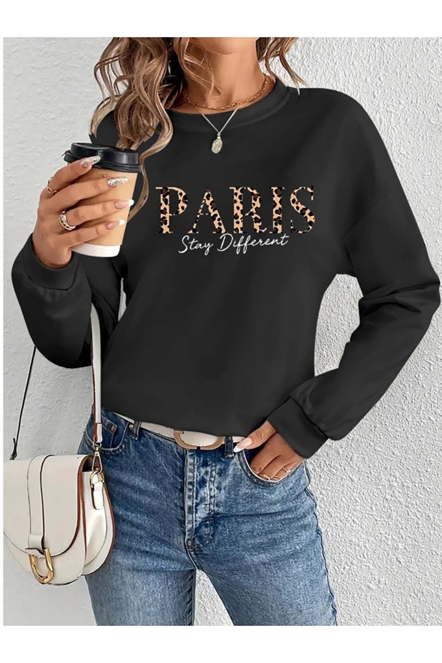 MHT STORE Kadın Uzun Kollu Bisiklet Yaka Desenli Viskon Iki Iplik Bluz