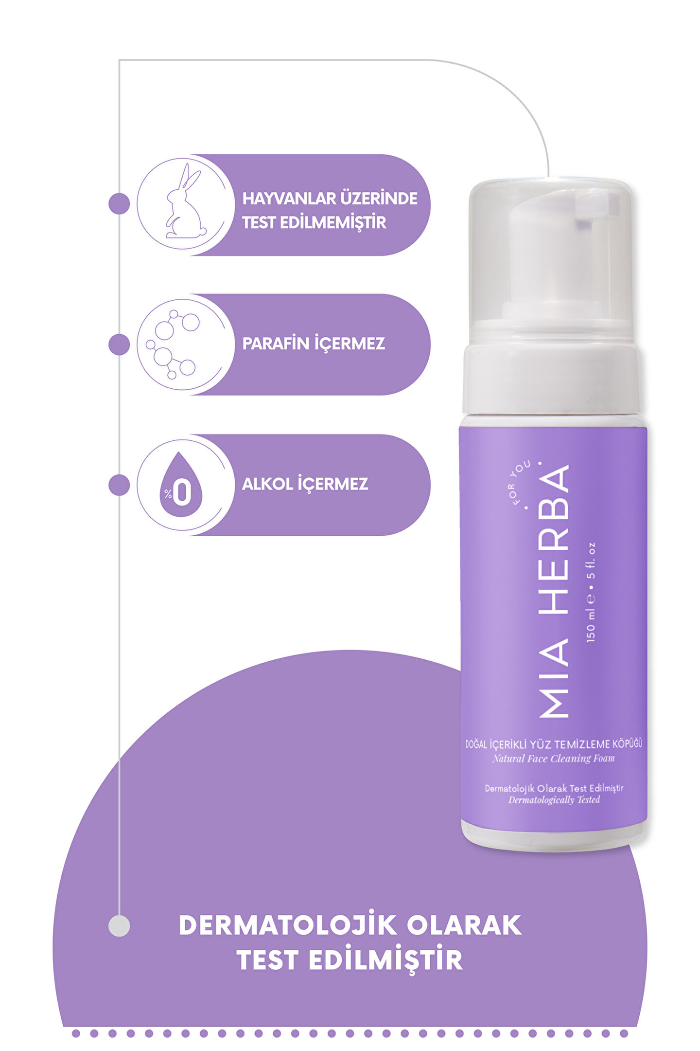 Mia Herba Doğal İçerikli Yüz Temizleme Köpüğü 150 ml Ürün Açıklaması: Mia Herba Doğal İçerikli Yüz Temizleme Köpüğü, cildinizdeki yağı, kiri ve makyaj kalıntılarını nazikçe temizler. Cildinizin sebum seviyesini dengeler. Cildinizi nemlendirmeye yardımcı olur. Geliştirilmiş doğal içeriği ile cildinizdeki gözenekleri sıkılaştırır. Faydaları: Mersin Yaprağı Suyu: Antosiyaninler ve flavonoidler gibi aktifler nedeniyle doğası gereği antioksidandır. Sadece cildi zararlı oksidasyon sürecinden değil, aynı zamanda serbest radikallerden de korur.; Sabun Otu Kök Ekstresi: En eski doğal temizleyicidir. Cildinizin nazikçe temizlenmesine doğal bir çözüm olarak katkı sağlar.; Meyan Kökü Ekstresi: Hassas ve kızarık ciltlerde içeriğindeki galibrin aktif bileşeni sayesinde düzensiz cilt tonu görünümünü iyileştirmede etkilidir.; At Kestanesi Tohum Ekstresi: Cildinizdeki gözenekleri sıkılaştırmaya yardımcı olurken dış etkenlerden cildinizi korur.; İçindekiler: Aqua, Cocamidopropyl Betaine, Rosa Damascena Flower Water, Myrtus Communis Leaf Water, Polysorbate 20, Benzyl Alcohol, Dehydroacetic Acid, Parfum, Aloe Barbadensis Leaf Juice, Saponaria Officinalis Root Extract, Glycerin, Sodium Benzonate, Glycyrrhiza Glabra Root Extract, Helichrysum Angustifolium Flower Extract, Aesculus Hippocastanum Seed Extract, Calendula Officinalis Flower Extract, Citric Acid, Linalool Uyarılar: Ürünü ambalajında kuru, serin ve direkt güneş ışığından uzak bir yerde tutunuz.; Göz ile temasından kaçınınız, temas etmesi halinde bol su ile durulayınız.; Çocuklardan uzak yerde muhafaza ediniz.; İçerisinde bulunan herhangi bir bileşene karşı bilinen bir allerjiniz var ise ürünü kullanmayınız.; Kullanım Önerileri: Yeterli miktarda ürünü elinize alınız, bolca köpürterek uygulayınız, ardından bol su ile durulayınız. Her gün kullanıma uygundur. Diğer Bilgiler: Tüm cilt tipleri için uygundur.; Alkol içermez; Paraben içermez; Hayvanlar üzerinde test edilmemiştir;