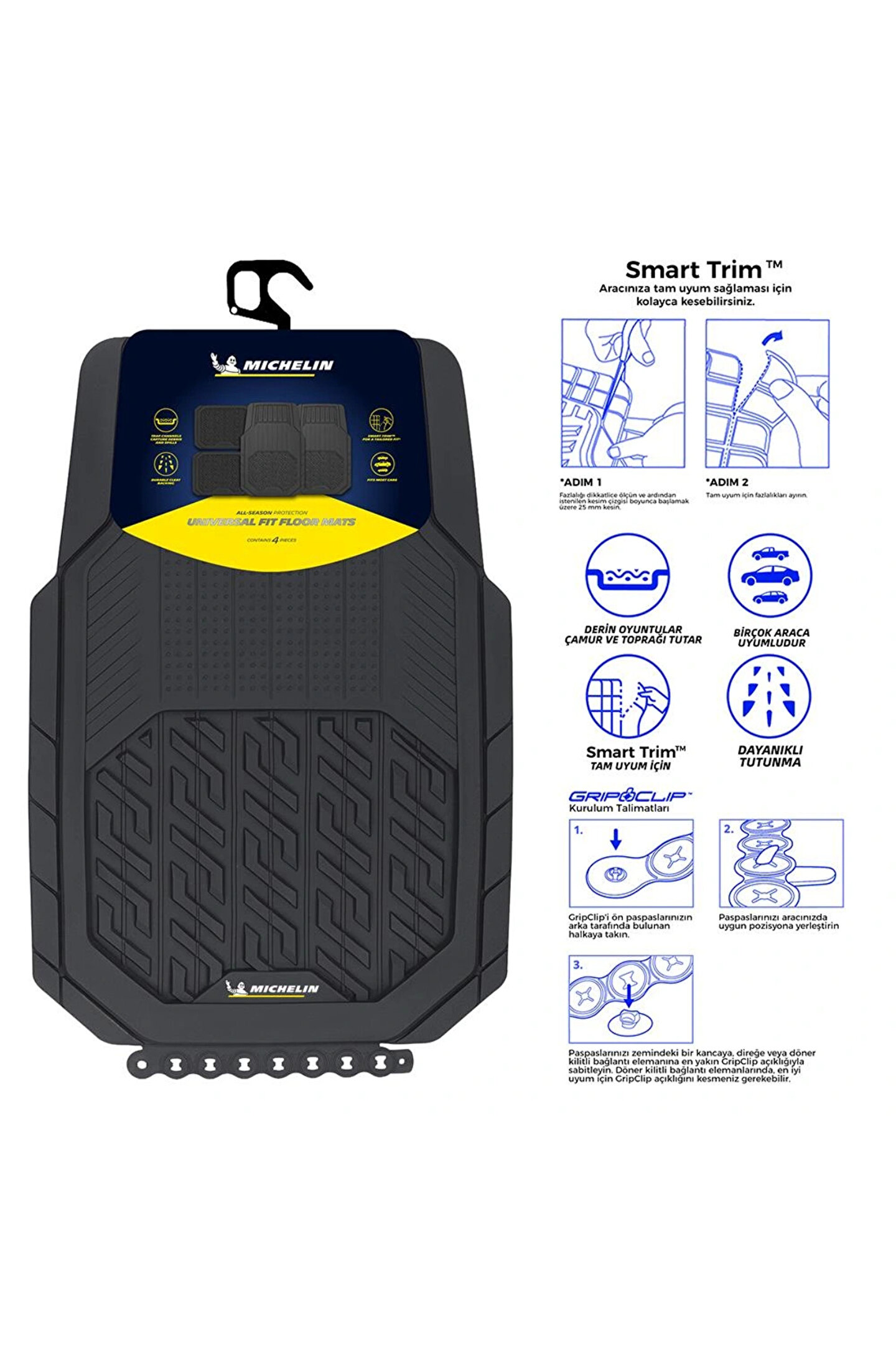 • Michelin MC34587 Tüm Araçlara Uyumlu 4 Parça Üniversal 3D Havuzlu Oto Paspas • Universal Tasarımı ve kesilebilir tasarımı ile tüm marka ve model araçlara mükemmel uyum sağlar.; • Uluslararası standartlara uygun kaliteli malzemeden üretilmiştir.; • Kaliteli malzemeden üretilmiştir, Alerjik ve kanserojen madde içermez.; • Universal olarak üretilmiş olup, makas yardımıyla kesim yerlerinden kesip kendi aracınıza uygun hale getirebilirsiniz, bütün araçlara uyumlu hale getirilir.; • Kaymayı engelleyen özel dişli taban tasarımı sayesinde sürüş pedallarına doğru toplanma ve kayma yapmaz, sürüş güvenliği sağlar, kaza riskini önler.; • Paspas üzerinde ayağınızı rahat hareket ettirmenizi sağlayan özel ergonomik oluklar sayesinde maksimum sürüş güvenliği sağlar.; • Şoför ve yolcu tarafı özel olarak tasarlanmış, güçlendirilmiş topuk destek alanı ile aşınmaya karşı uzun kullanım ömrü sunar.; • GripClip™ Patentli tasarımı sayesinde paspasların alt kısmında yer alan çoklu halka delikleri, aracınızdaki kilitlenebilir paspas sabitleyicilerine uyumlu şekilde monte edilerek paspasların kaymadan sabit durmasını sağlar.; • Gelişmiş Performanslı Plastikten üretilmiş olup, yüksek ısı ya da yüksek soğuğa maruz kalsa da orijinal yapısını korur, kırılma, çatlama ya da sertleşme olmaz.; • Gelişmiş Performanslı Plastikten üretilmiş olup, aşınma ve delinme olmadan uzun süre kullanılabilir, deformasyona uğramaz, • Uluslararası standartlara uygun olarak yüksek teknoloji ile hijyenik malzemeden üretilmiştir, • Özel tasarım ergonomik oluklu yapısıyla toz, kir ve çamurun aracınızın zeminine ulaşmasını engeller, Yağmurda, Karda, Çamurda, 4 mevsim güvenle kullanım sağlar.; • Geri dönüştürülebilen hammaddeden üretilmiştir, • Diğer paspasların aksine ince olmadığı için delinme ve ayak altında toplanmaya karşı dayanıklıdır, • Özel tasarım Yüksek kenarlıklar ve kanallar sayesinde kir ve pisliği içinde tutarak aracınızın halısını her türlü su, kar, çamur, toz ve topraktan korur.; Su geçirmez ve leke tutmaz.; • Özel tasarım kenarlıklar sayesinde, arabanızın döşemesini lekelere, dökülmelere ve günlük yıpranmaya karşı koruyun.; • Kolay temizlenebilen modern tasarım, • Aracınızın taban döşemesinde oluşacak kalıcı lekelere karşı etkin ve uzun ömürlü koruma sağlar, • 4 parçadan oluşmaktadır, • 100 yıllık Michelin kalitesi ile yenilikçi teknoloji • NOT: ÜRÜN ARACA ÖZEL DEĞİLDİR KESİM YERLERİNDEN KESEREK ARACINIZA UYGUN HALE GETİREBİLİRSİNİZ.