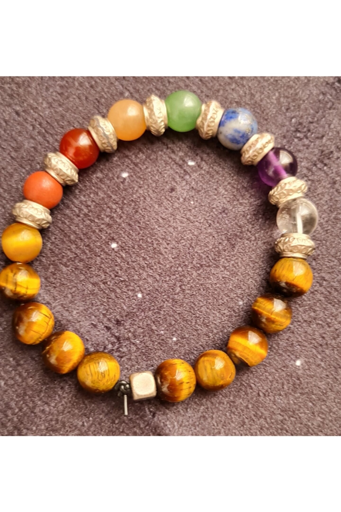 Doğal 7 Çakra Bilekliği Kaplan Gözü, Akik, Yeşim, Ametist, Beyaz Kuvars, Lapis Lazuni, Sitrin