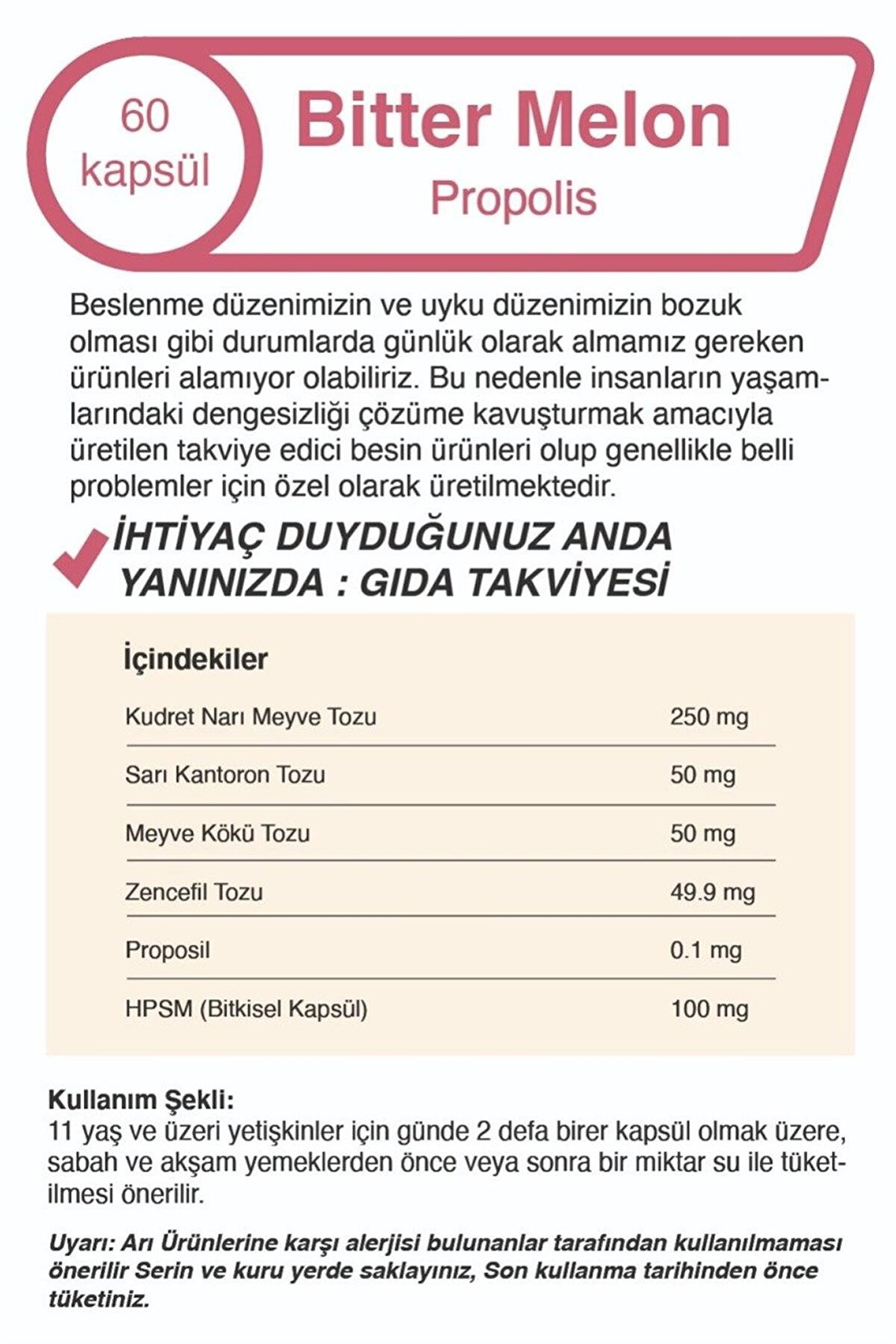 Günlük vitamin ihtiyacınızı karşılamak için özel olarak formüle edilmiş, Bitter melon propolis içeriğiyle zenginleştirilmiş multivitamin takviyesi; Kolay tüketim için pratik kapsül formunda, günlük rutininize kolayca entegre edilebilir; Üç adetlik set içeriğiyle uzun süreli kullanım imkanı sunar ve düzenli takviye alışkanlığı oluşturmanıza yardımcı olur;