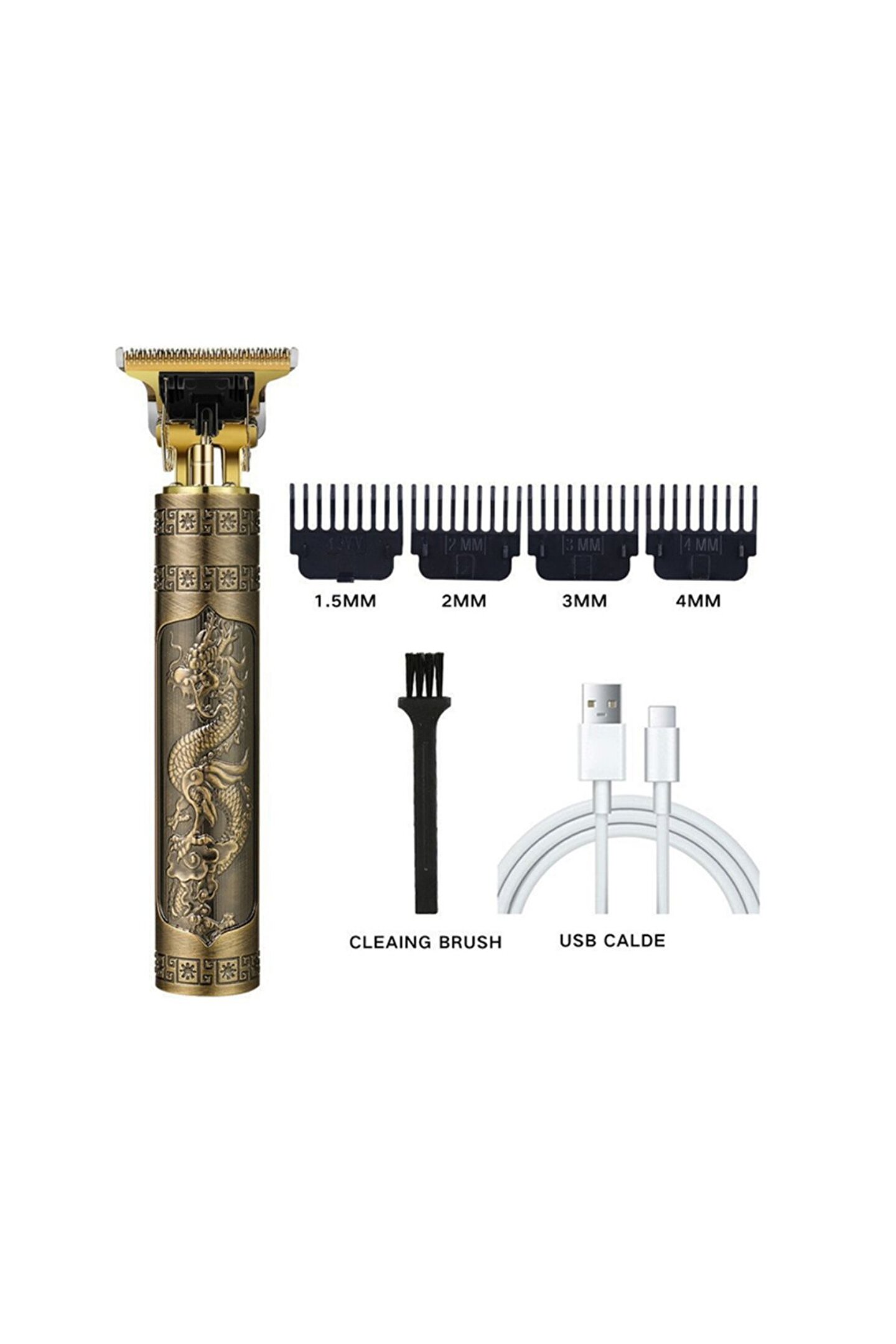 CLZ192 VINTAGE T9 KOMPLE METAL USB ŞARJLI ENSE ÇİZİM - SAÇ SAKAL KESME TRAŞ MAKİNESİ (4172)