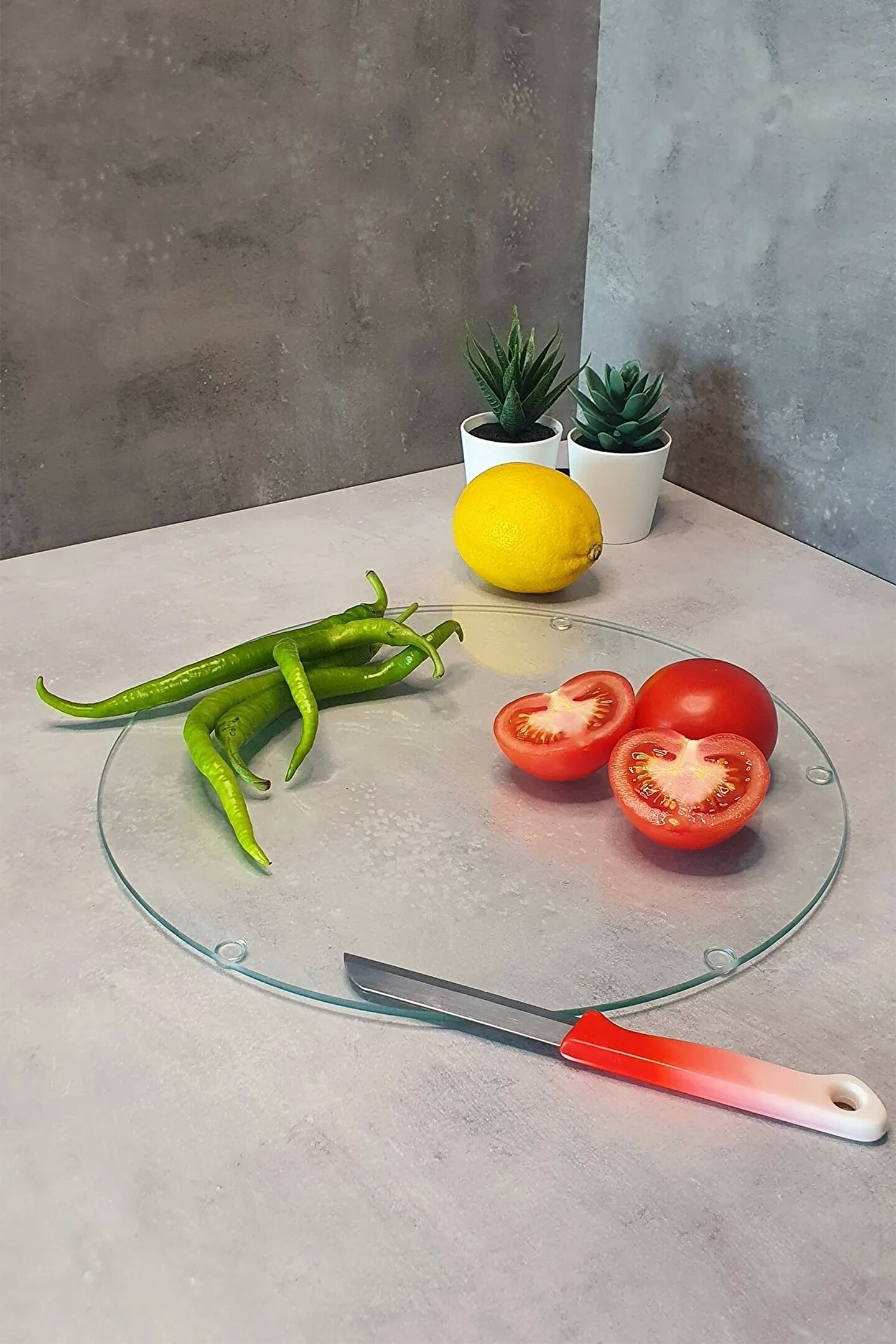Mutfakta vazgeçilmeziniz haline gelecek olan cam kesme tahtası, hem işlerinizi kolaylaştıracak hem de mutfağınıza şık bir görünüm kazandıracaktır.; Farklı desen ve ebat seçenekleriyle sunulan Decorita cam kesme tahtaları, anti bakteriyeldir.; Sizin günlük mutfak işlerinizi daha rahat ve düzenli hale getirmeniz için ideal bir seçenektir.; Cam kesme tahtaları pratik kullanımıyla hem kolay temizlenebilir, hem de kir tutmaz olduğu için çok daha sağlıklıdır.; ; cam kesme tahtaları, 4mm, kırılmaya ve hasara karşı dayanıklı temperli camdan üretilmektedir.; ; Isıya dayanıklıdır.; ; Şık ve dekoratif görüntü sağlar.; ; Kaliteli malzeme kullanılarak detaylı işçilik ile üretilmiştir.; ; Uzun süreli kullanıma uygundur.; Kir birikimi yapmaz.; ; Islak zeminlerden etkilenmez.; ; Yüksek kaliteli cam malzeme, dayanıklılık ve uzun ömürlü kullanım sağlar.; ; Altında bulunan silikon ayaklar sayesinde zemine temas etmez ve cam kesme tahtanız mutfak tezgahınızda kaymaz.