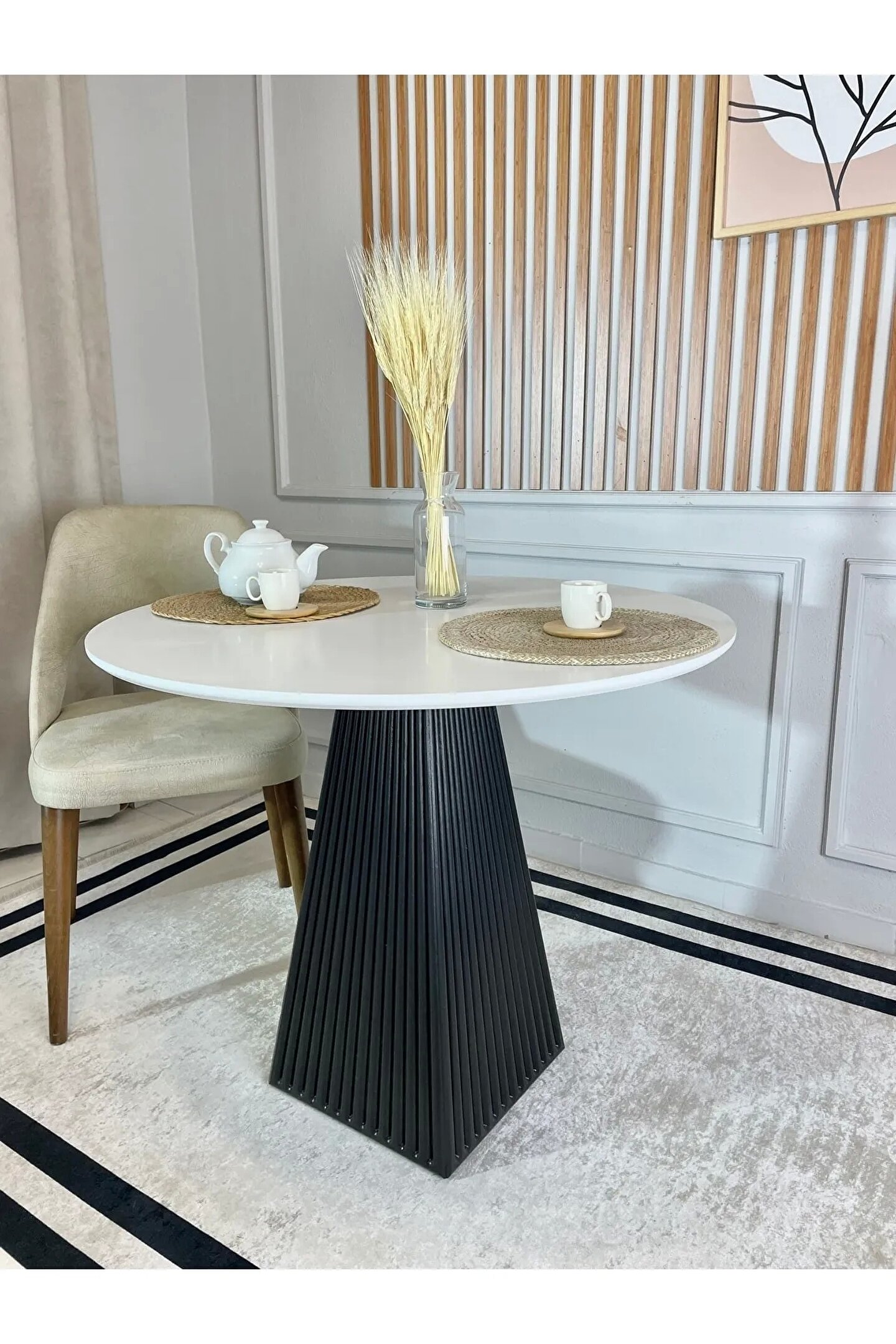 90 Cm Siyah Fitilli Yuvarlak Ahşap Yemek Masası - Fungi Mantar Masa - Balkon Kafe Masası