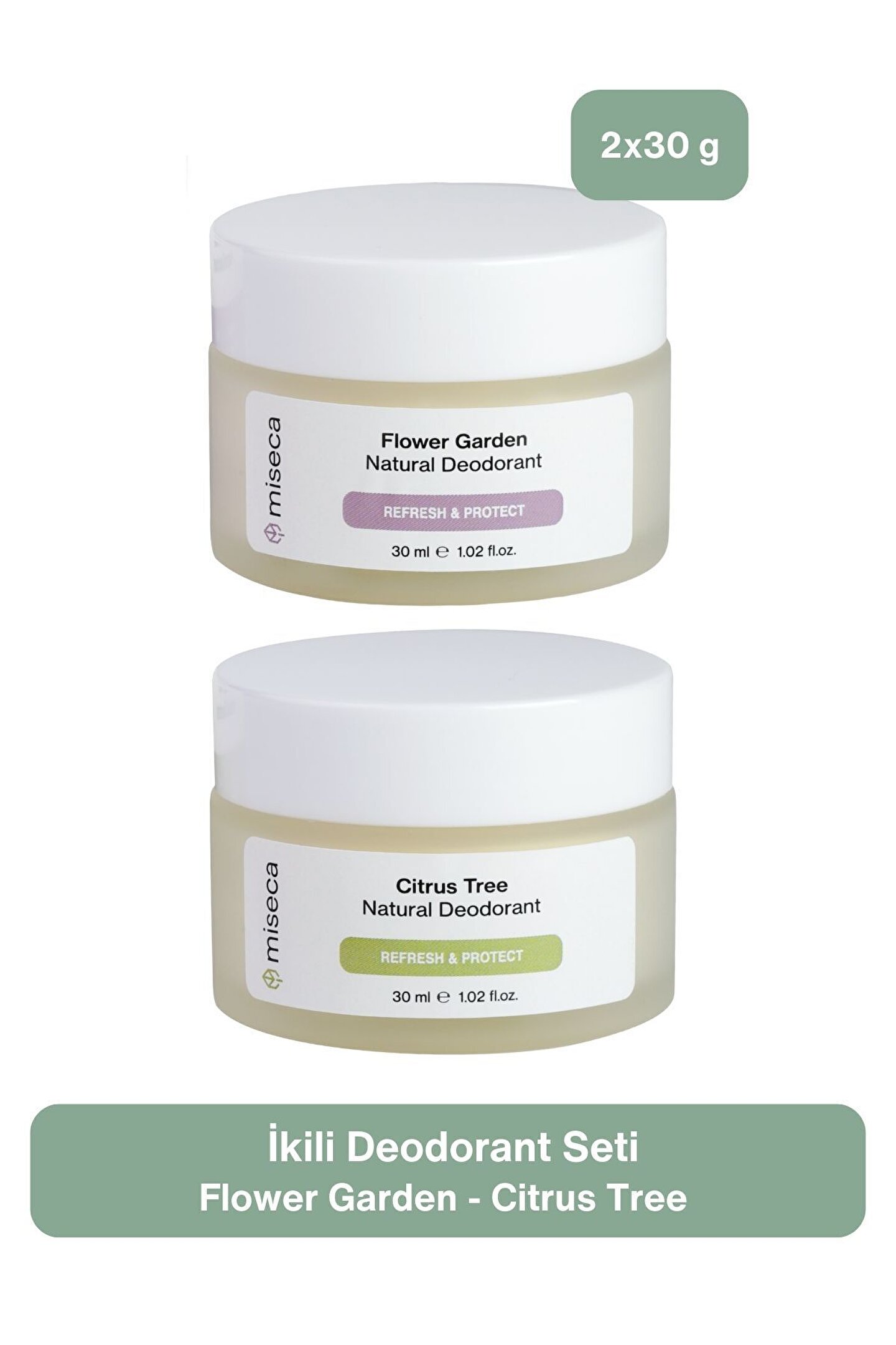 Doğal terleme sürecini engellemeden, ter kokusunun oluşmasını önlemeye yardımcı olur.; ; Alüminyum, alum türevleri ve karbonat gibi aşındırıcı, gözenek tıkayıcı içerikler yoktur.; ; 2 farklı koku çeşidi bir arada tanışma fırsatı.; Bu set ile zevkinize göre kullanım sağlayabilir veya sevdiğinizle paylaşabilirsiniz.; ; Set içeriği: Flower Garden Natural Deodorant 30 ml, Citrus Tree Natural Deodorant 30 ml ; Doğal kaynaklı hammaddelerle üretilmiştir.
