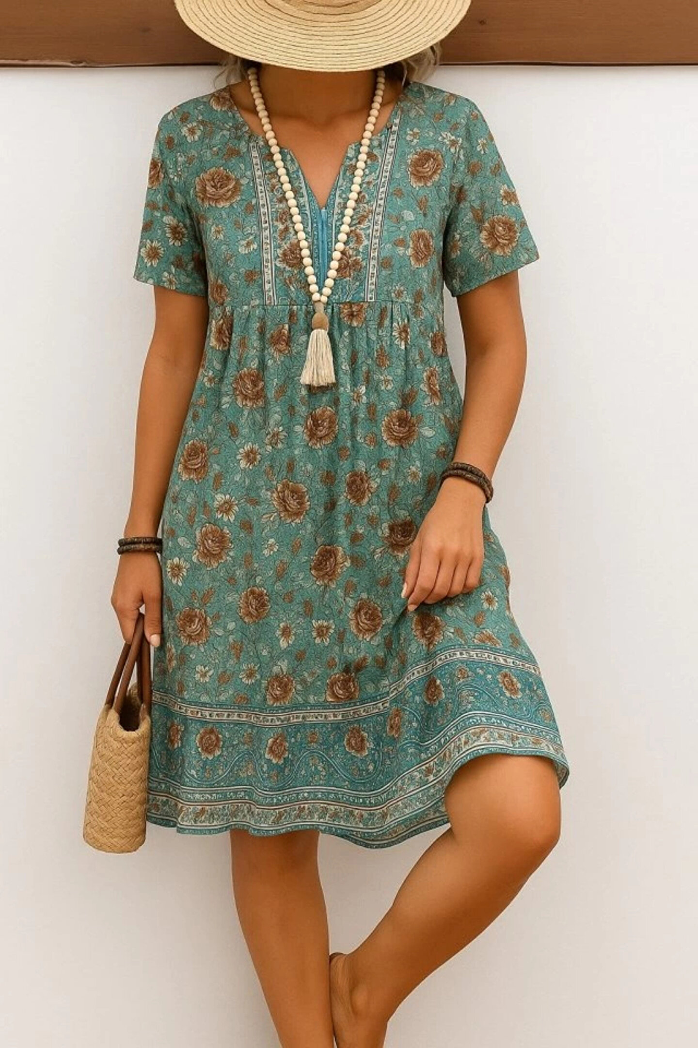 MissRunin Kadın Kısa Kollu Yakası Bağcıklı önden Düğmeli Fırfır Desenli Süprem Elbise