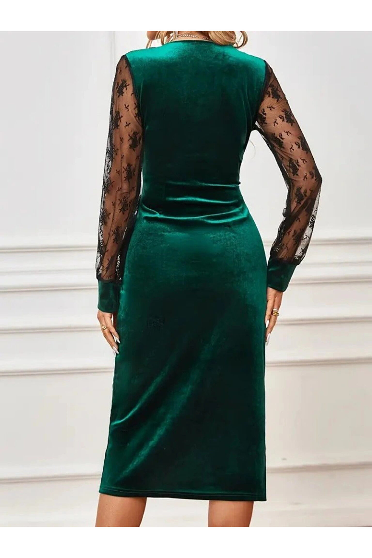 MissRunin Kadın Uzun Kollu Kruvaze Yakalı Yandan Düğmeli önden çapraz Kesin Detaylı Midi Kadife Elbise