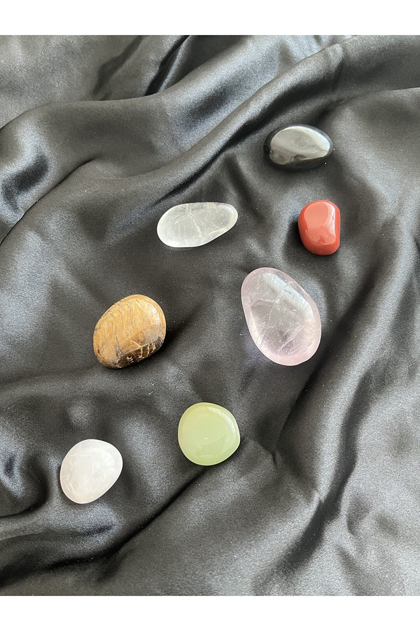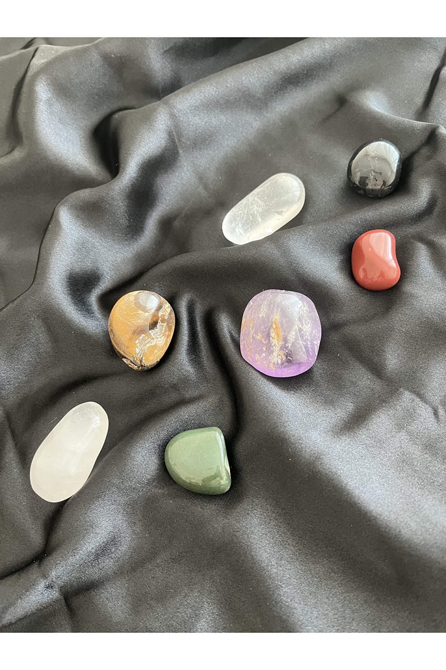 Ürün set halindedir ve set içeriğinde 7 adet doğal taş (ametist, pembe kuvars, kristal kuvars, akik, kaplangözü, oniks ve aventurin) bulunmaktadır. ; Doğal taşlar tabiatı itibariyle kendine özgü biçimdedir ve aynı taş cinslerinde dahi ufak tefek renk tonu ve biçim farklılıkları görülebilir. ; Taşların ağırlığı farklılık göstermekle birlikte 10-35 gr arasındadır. ; Çakra taşlarının enerjileri, çakralarınızın büyük bir uyum ve denge duygusu bulmasına yardımcı olmayı amaçlamaktadır.;