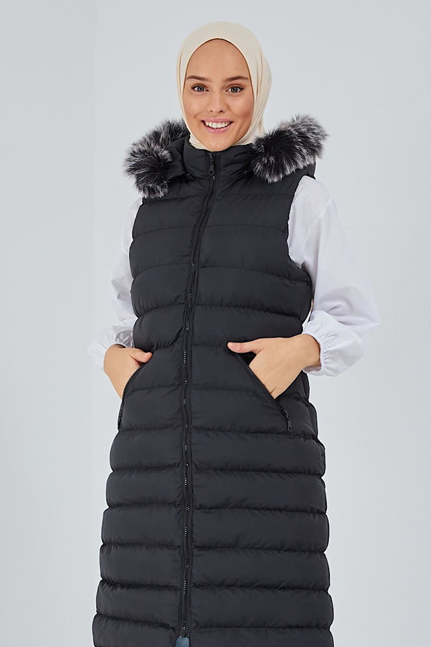 Kadın Kapüşon Ve Fermuar Detay Welsoft Kolsuz Yelek