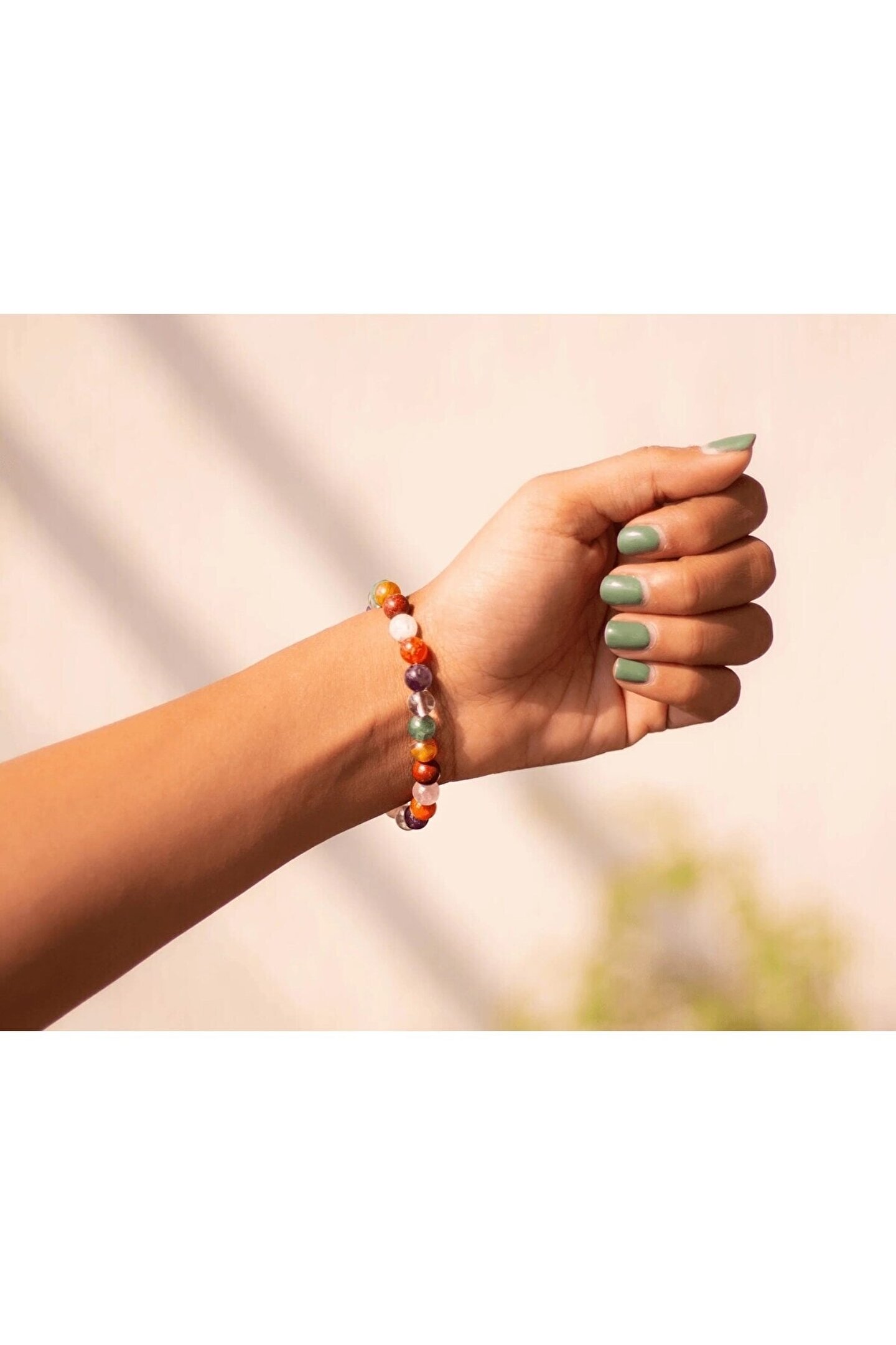 - Doğal taş bileklik, şıklığınızı tamamlayacak zarif bir aksesuardır; - Akik, pembe kuvars, ametist ve prehnit kristallerinden oluşan bu bileklik, benzersiz bir görünüm sunar; - 8mm boyutundaki bu bileklik, hem günlük kullanım hem de özel günler için idealdir; - Doğal taş materyali sayesinde her bilek boyutuna uyum sağlar ve konforlu bir kullanım sunar; - Bilekliğinizle doğanın enerjisini ve güzelliğini yanınızda taşıyın;