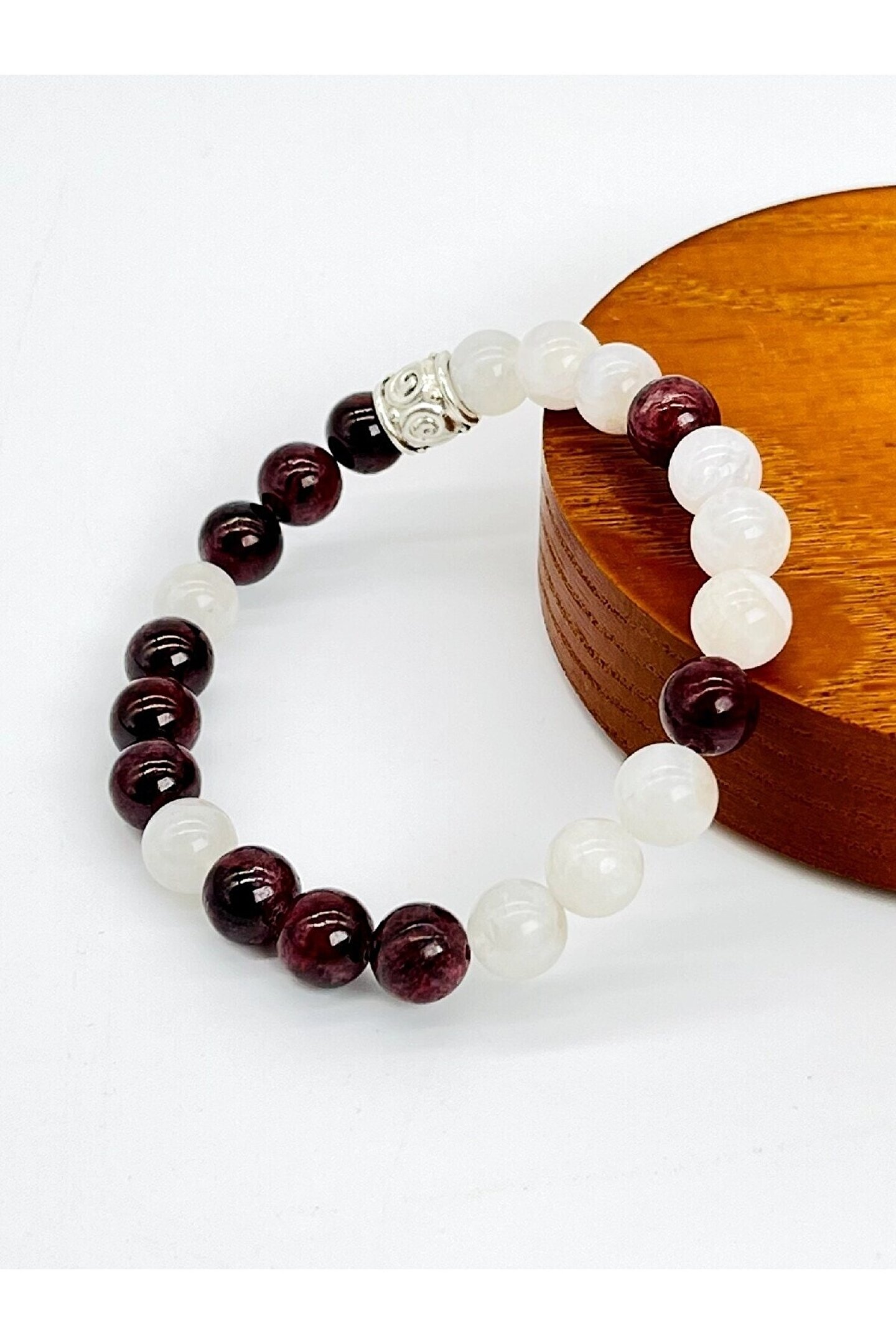 Ay Taşı & Lal Garnet Doğal Taş Özel Tasarım Bileklik 8 mm