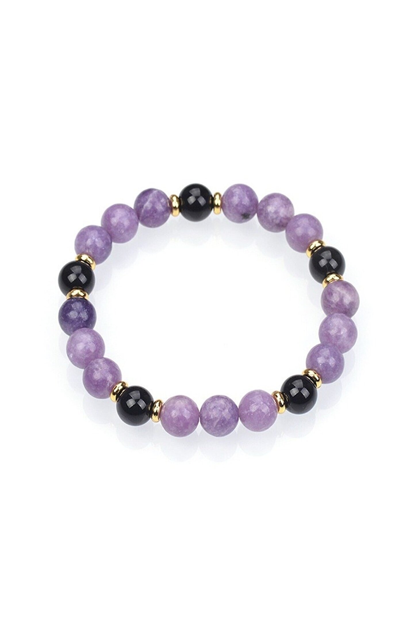 Sertifikalı Obsidyen & Lepidolit Doğal Taş Bileklik 8mm