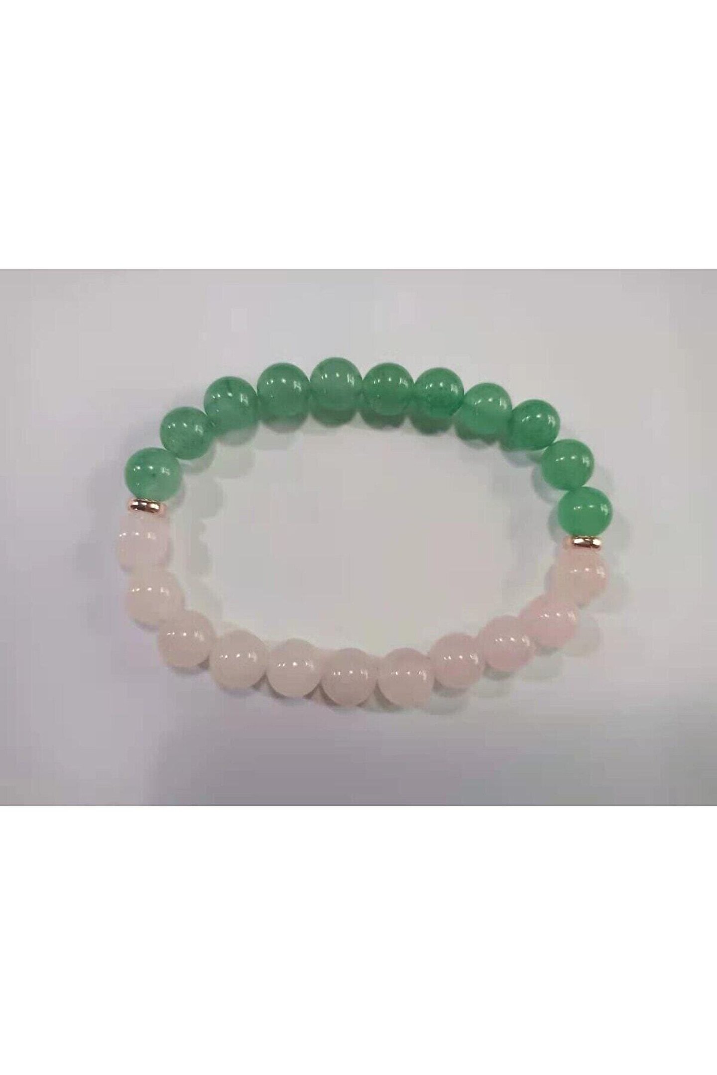 Bu doğal taş bileklik, hem şıklığı hem de doğallığı bir arada sunar; Pembe kuvars ve aventurin taşı kullanılarak tasarlanmıştır, bu da onu hem estetik hem de ruhsal açıdan zenginleştirici bir aksesuar haline getirir; 8mm boyutundaki boncuklarla üretilen bu bileklik, bileğe rahatça otururken aynı zamanda zarif bir görünüm kazandırır; Doğal taşların enerjisini her an yanınızda taşıyabileceğiniz bu bileklik, günlük kullanım için idealdir; ;;