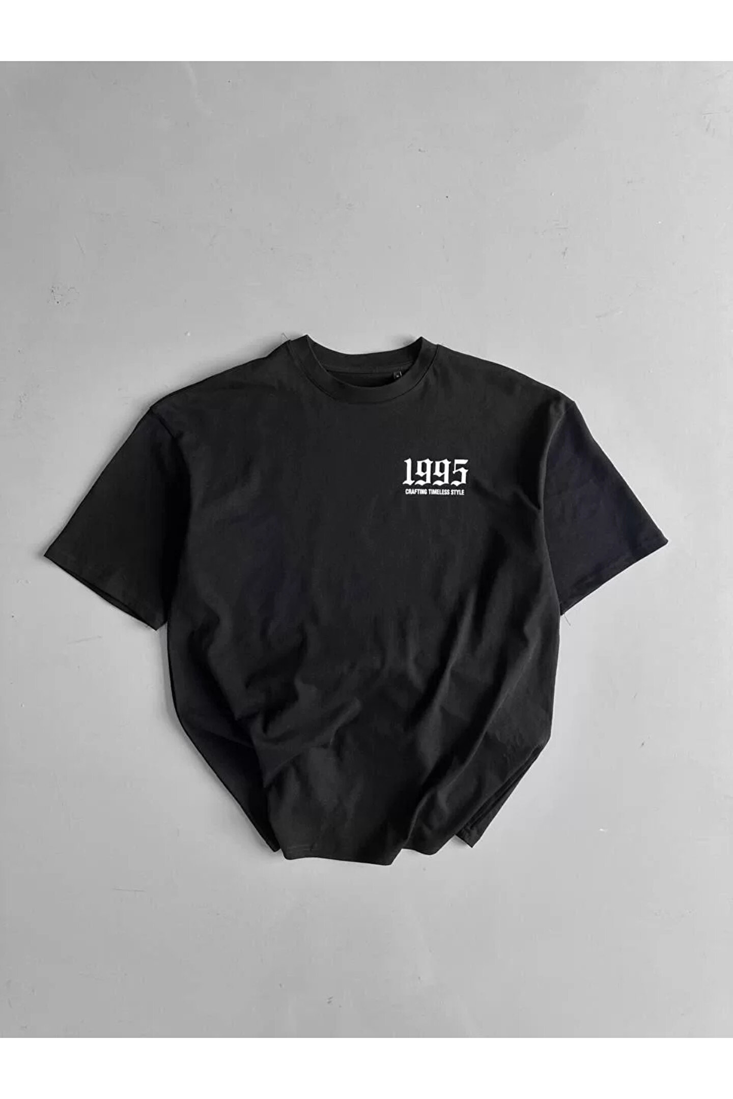 MODA 201 Penye Compack Baskılı Oversize Bisiklet Yaka Kısa Kol Yazlık T-shirt - Siyah