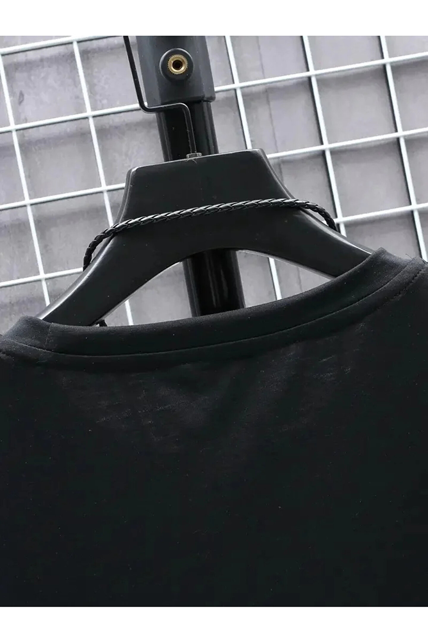 MODA 201 Penye Compack FUTRE Baskılı Oversize Kısa Kol Bisiklet Yaka T-shirt - Siyah