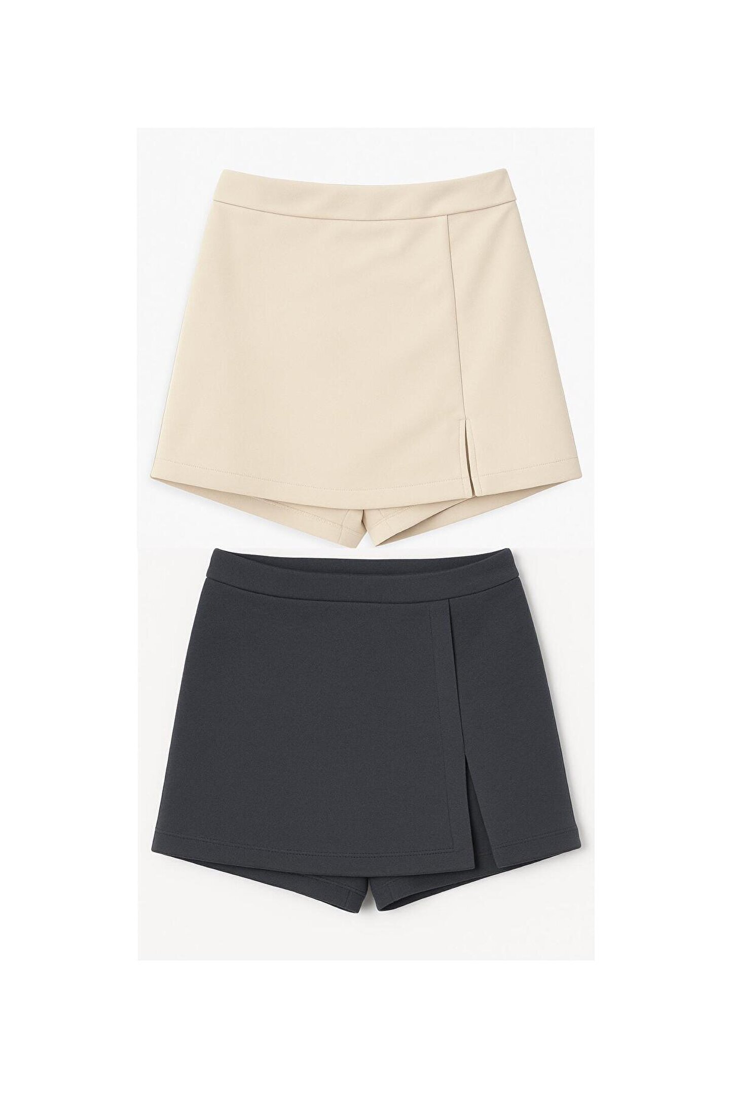 moda armanc 2li Yırtmaçlı Mini Şort Etek