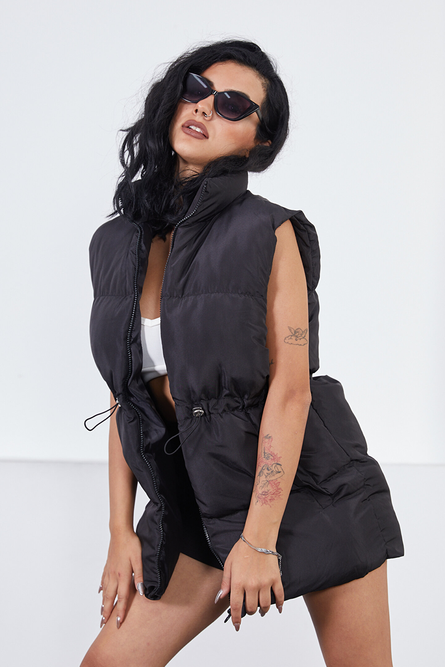 moda armanc Beli Lastikli Kadın Siyah Şişme Yelek