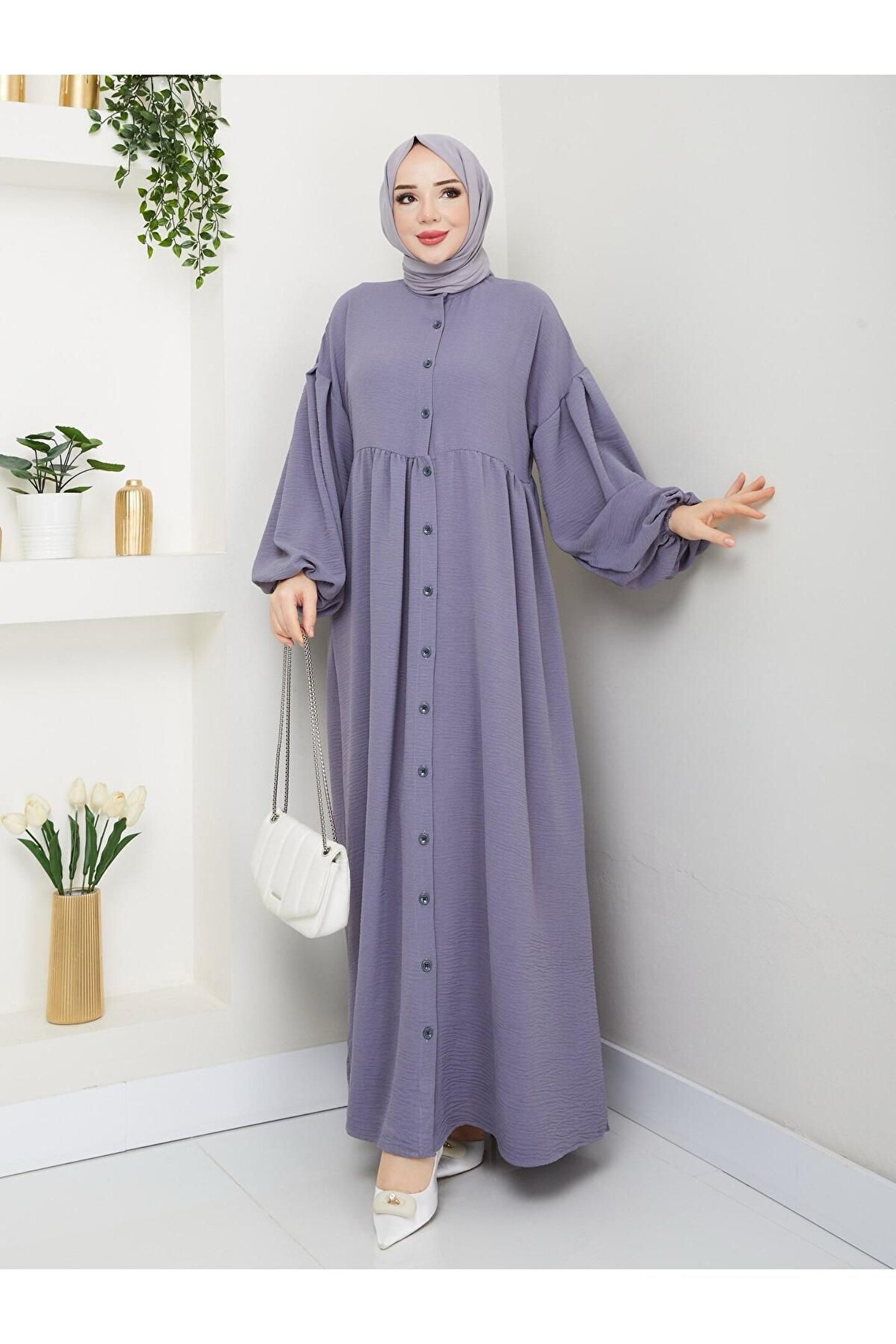 Düğmeli Ayrobin Lila Tesettür Elbise