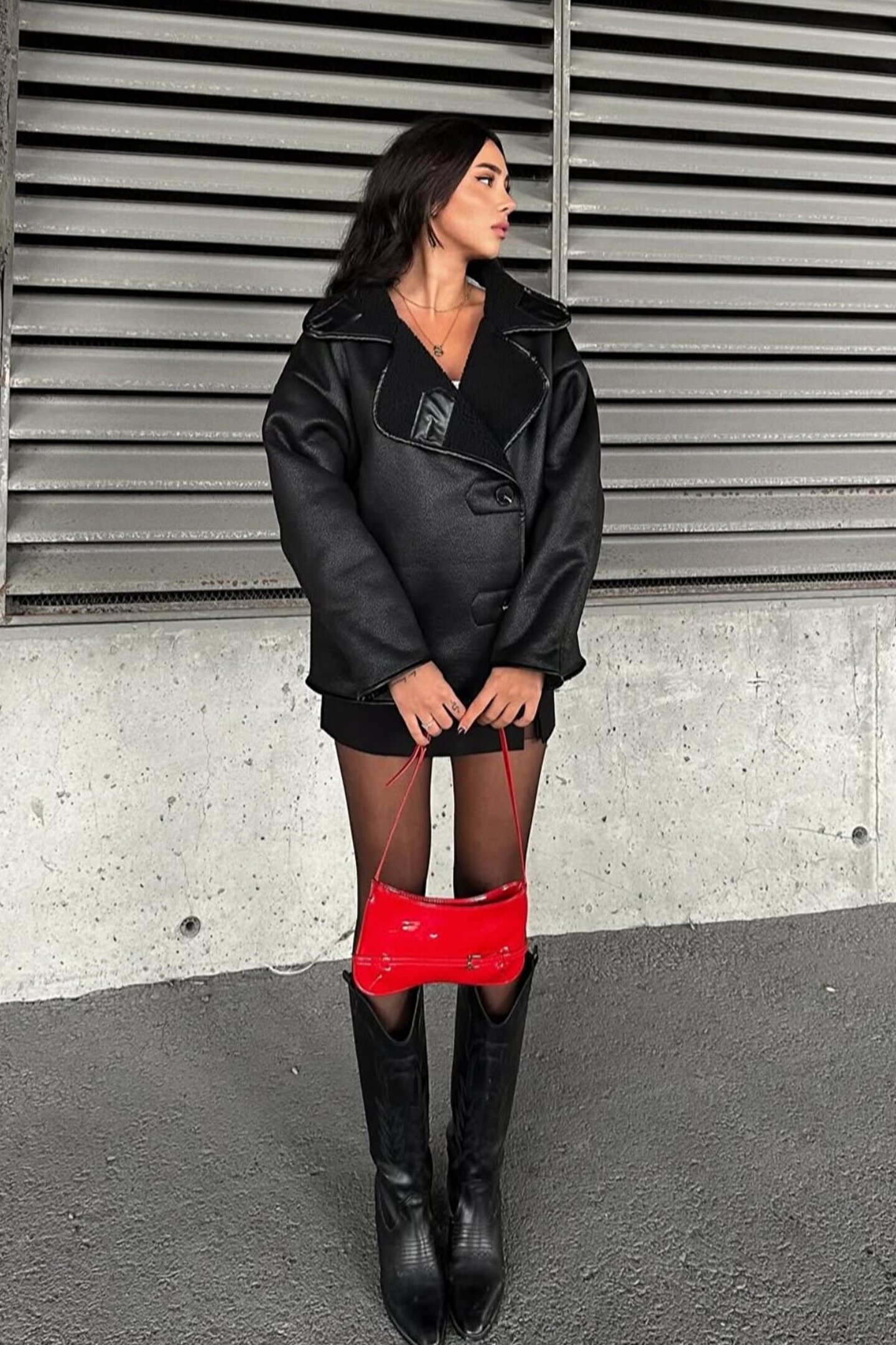 moda armanc Else Siyah Dokulu Süet Içi Peluşlu Oversize Zr Model Mont