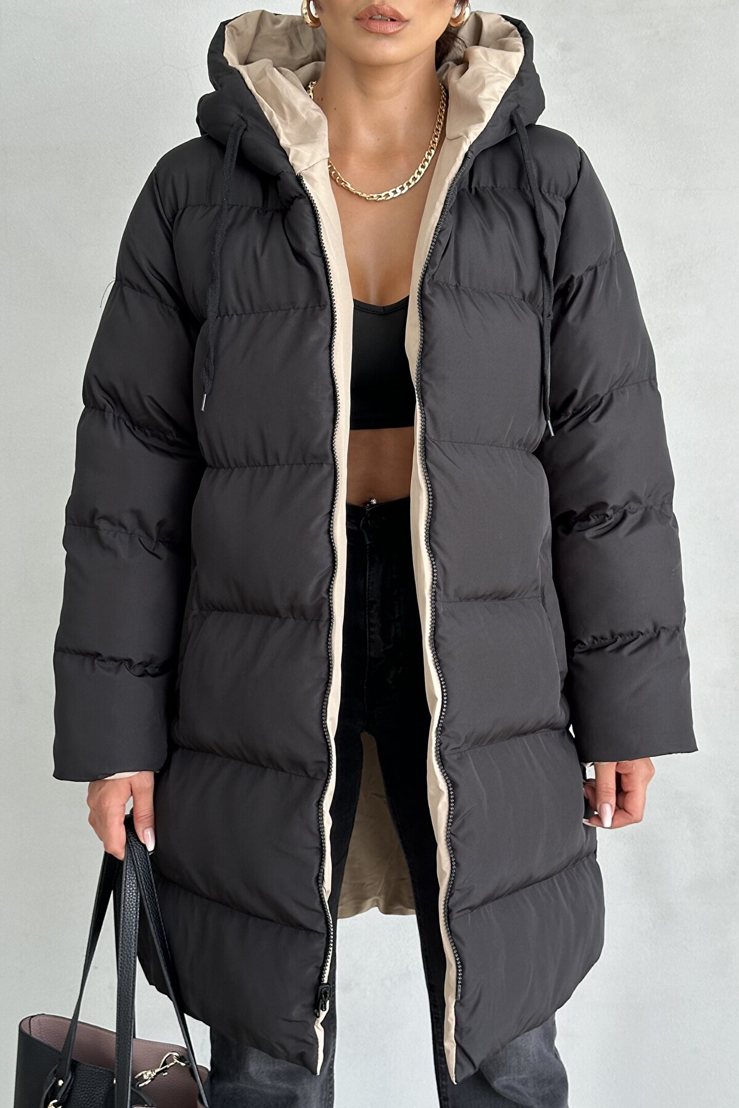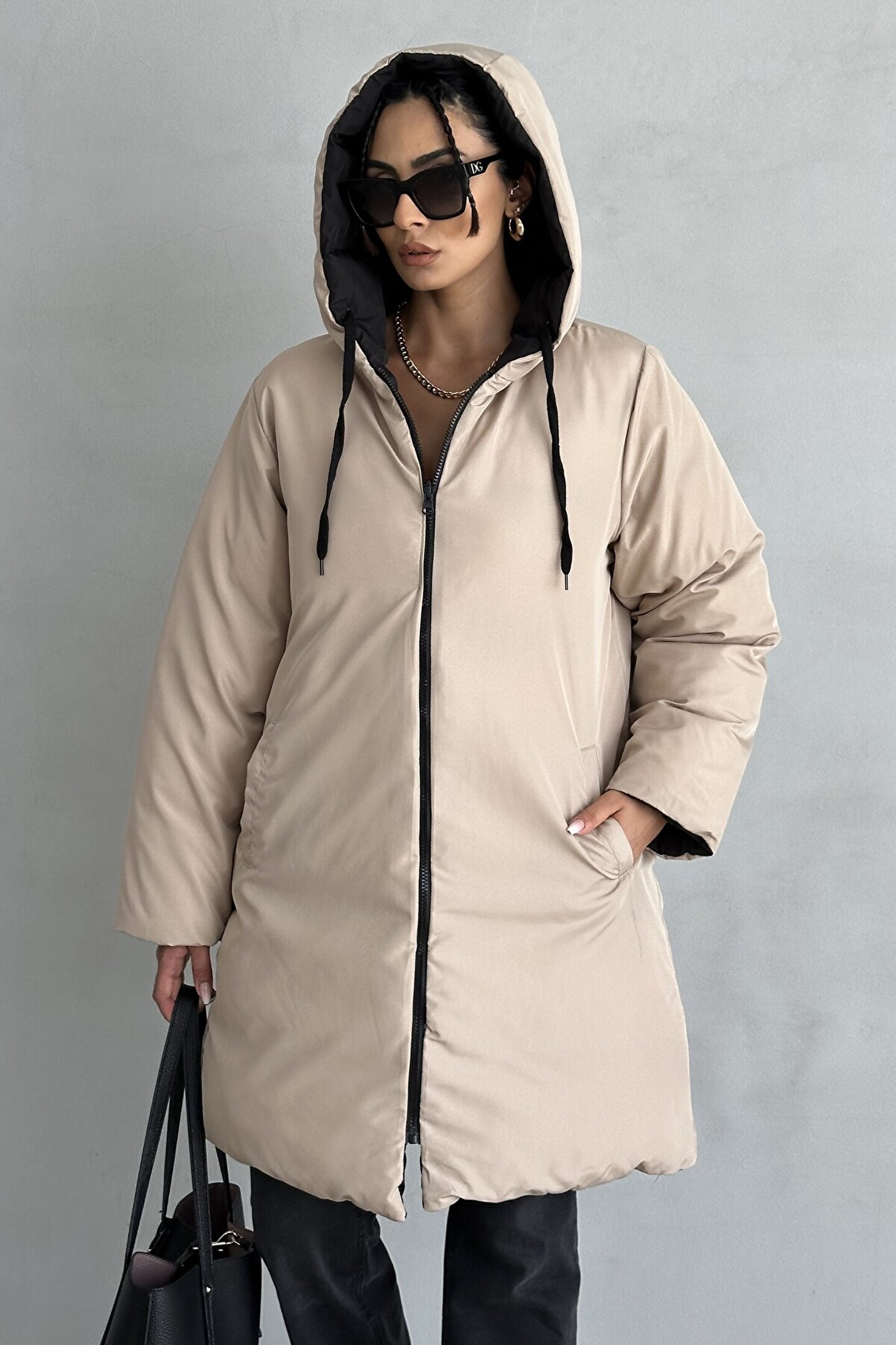• Bir yüzü bej, diğer yüzü siyah olan mont sayesinde tek ürünle iki farklı stil yaratabilirsiniz.