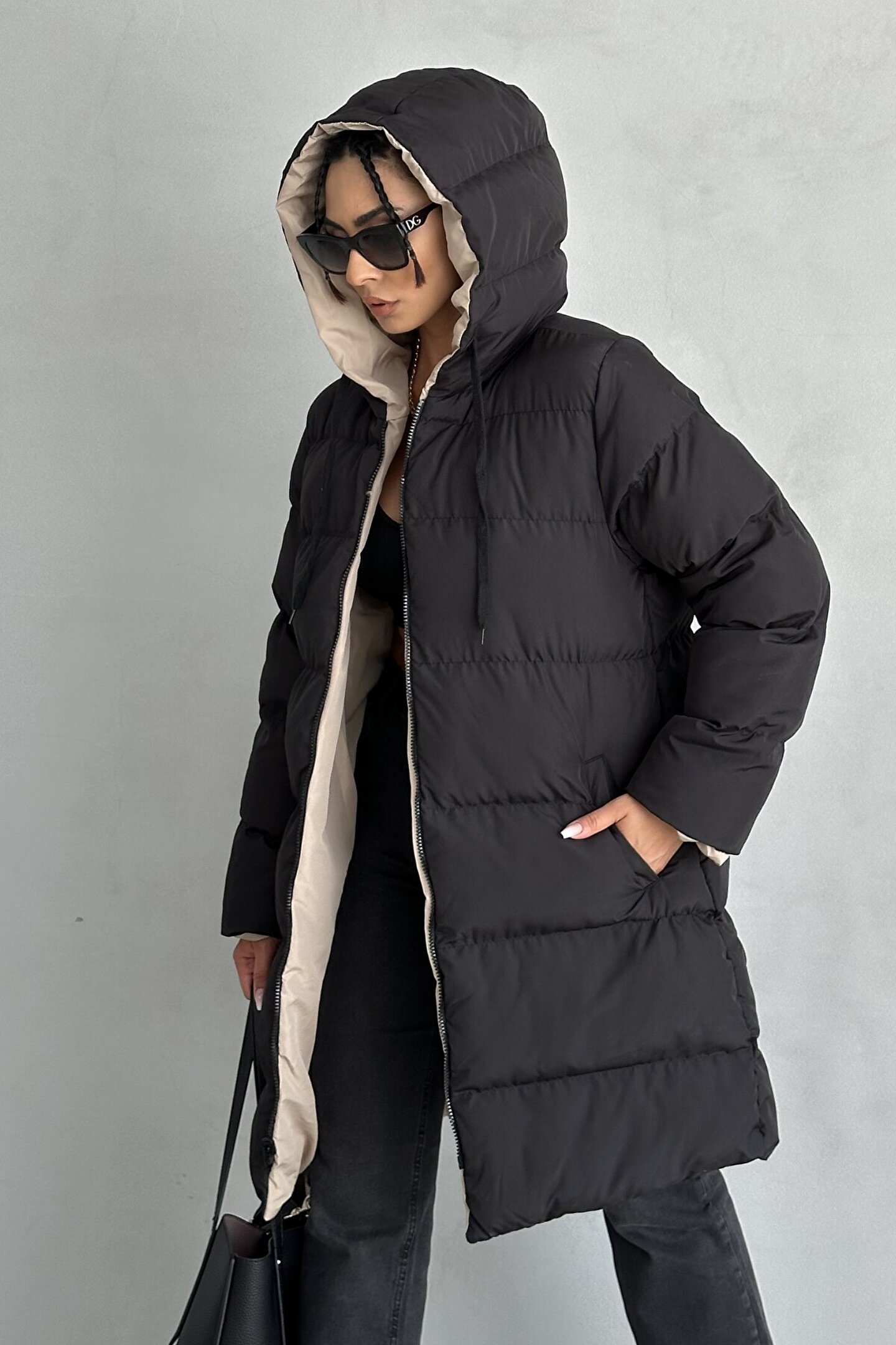Bir yüzü bej, diğer yüzü siyah olan mont sayesinde tek ürünle iki farklı stil yaratabilirsiniz.