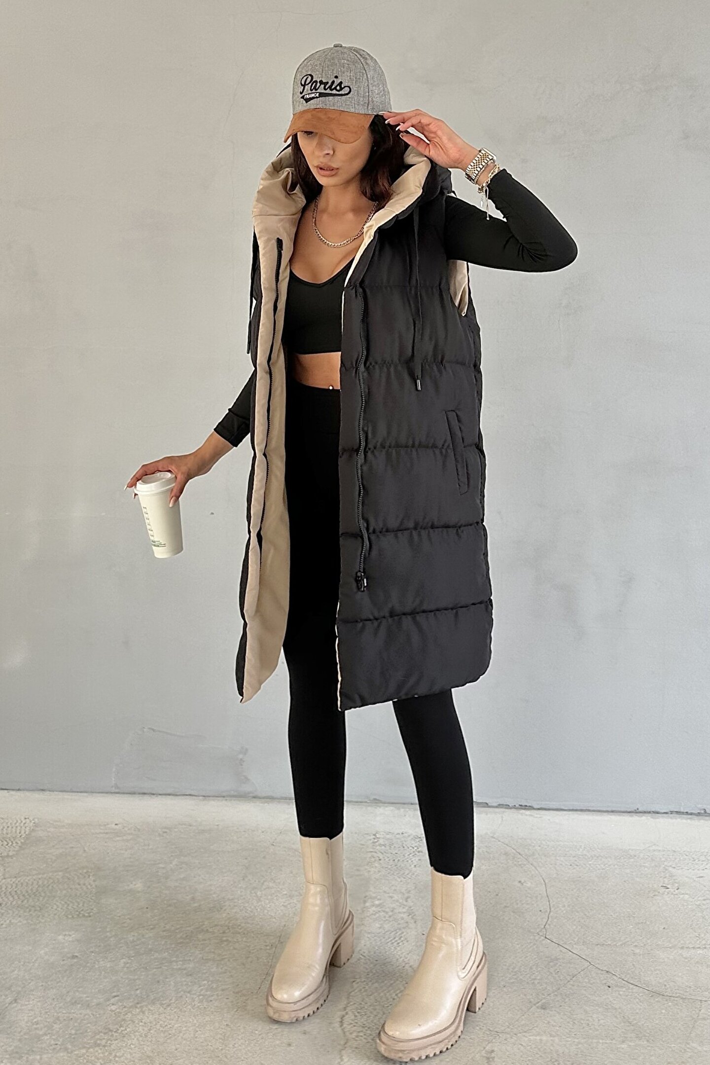 Çift taraflı kullanılabilir. ; Tam kalıptır. ; Ürün boyu: 94cm , Eni: 53 cm ; Fermuarlı ve Çift Ceplidir. ; Ürün Kumaş: %100 Polyester ; Model Ölçüleri: Boy: 172 Kilo: 58 (Modelin üzerindeki ürün S bedendir) ; SU GEÇİRMEZ: Su itici micro kumaştan üretilmiştir, bu sayede kış aylarında yağmur ve kar yağışlarında kesinlikle su geçirmez.. ; SOĞUKTAN KORUR: Ürünün içi yoğun jel elyaf dolumludur, elyafının jel olması ürünün hafif olmasını sağlarken yoğun dolumu sayesinde de en soğuk havalarda dahi üşütmez, sıcak tutar.. ; MEVSİMLİK GİYİLEBİLİR: Serin yaz akşamlarında kombininizi tamamlayacak şekilde hem tarzınıza ekstra şıklık katar hem de pratik bir şekilde ısınmış olursunuz.. ; ÇİFT TARAFLI: Ürün her iki tarafında da fermuar, cep gibi detaylar olacak şekilde tasarlanmıştır. Bu sayede 1 adet yelek satın alarak ayrı ayrı kombinlenebilecek 2 adet yeleğe sahip olmuş olursunuz.. ; Boy ve Kilo ölçülerinizle bize mesaj atarak beden önerisi talep edebilirsiniz, Moda Armanc keyifli alışverişler diler.. ;