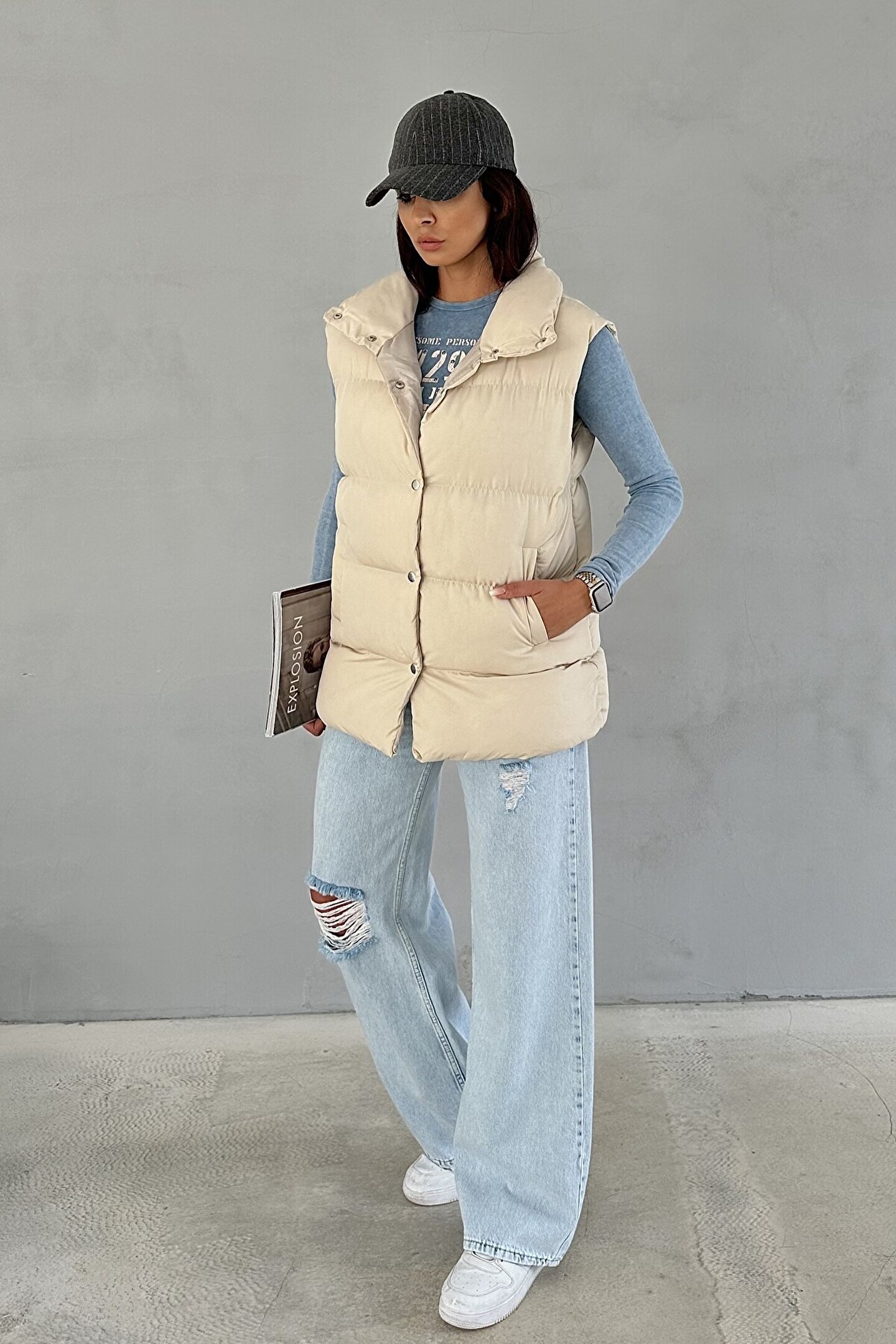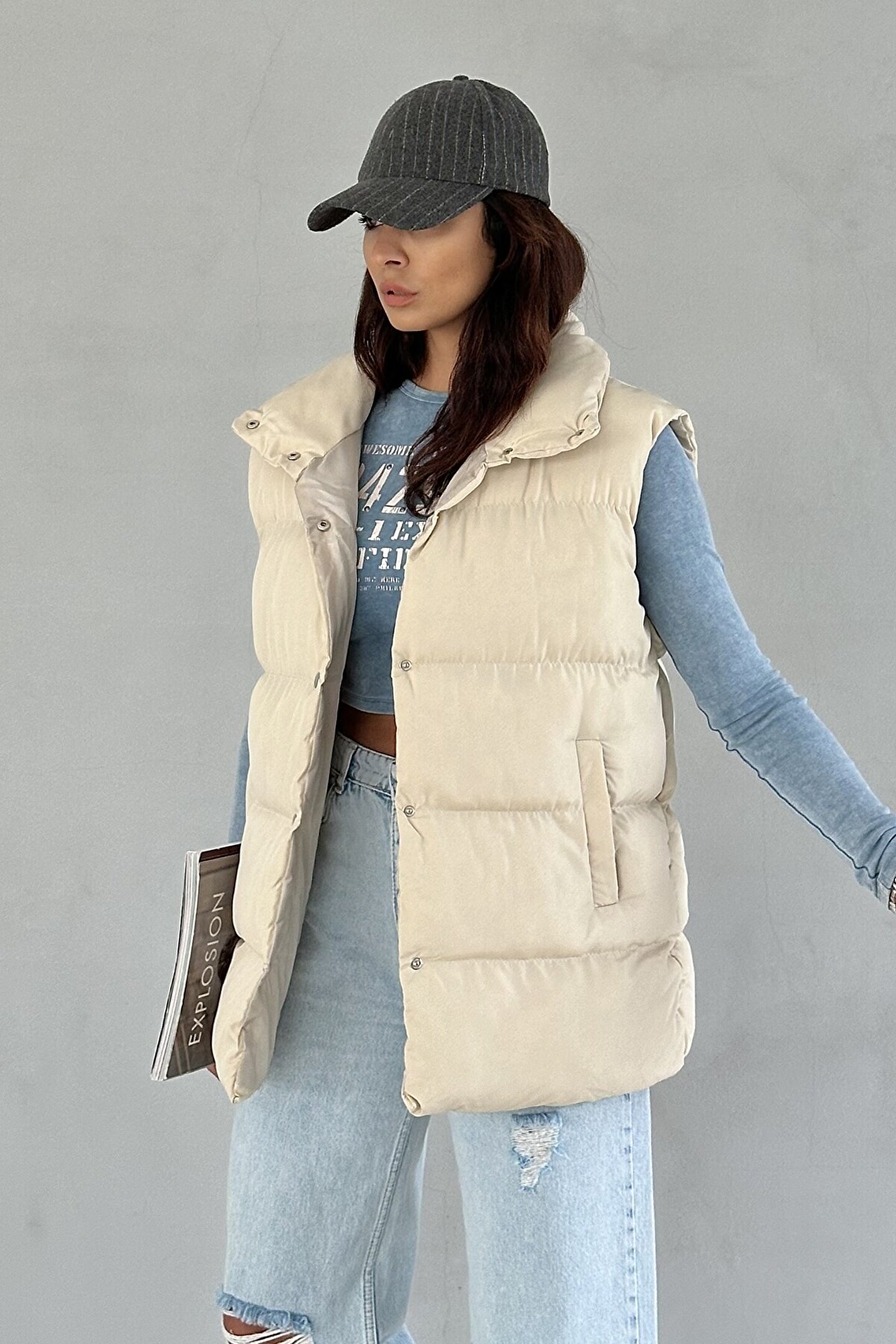 moda armanc Kadın Filotalı Cep Çıtçıtlı Yakalı Uzun Şişme Yelek