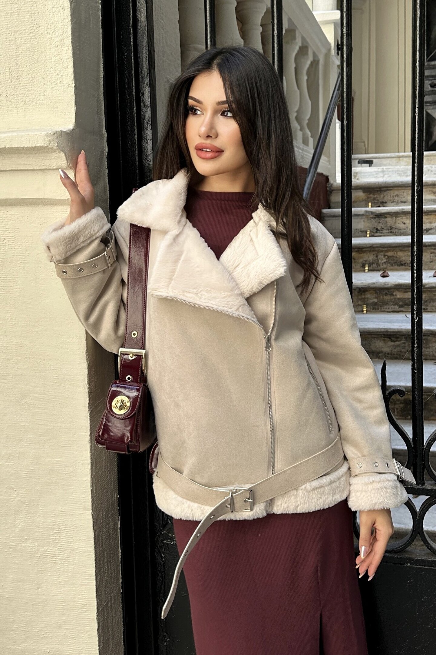 moda armanc Kadın Içi Rapitli Kemer Detaylı Zr Deri Süet Mont