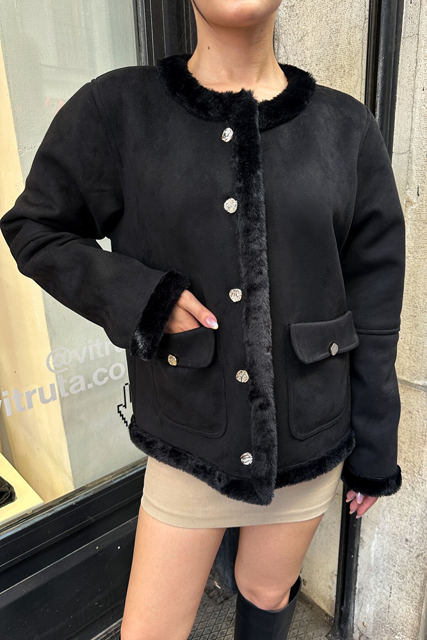 moda armanc Kadın İçi Suni Kürklü Süet Ceket - Yumuşak Dokulu, Düğmeli