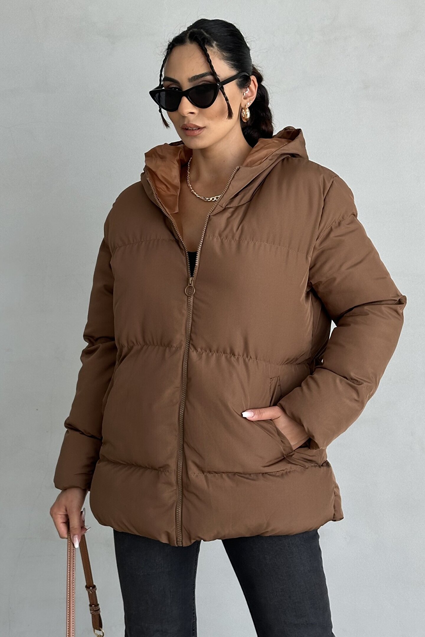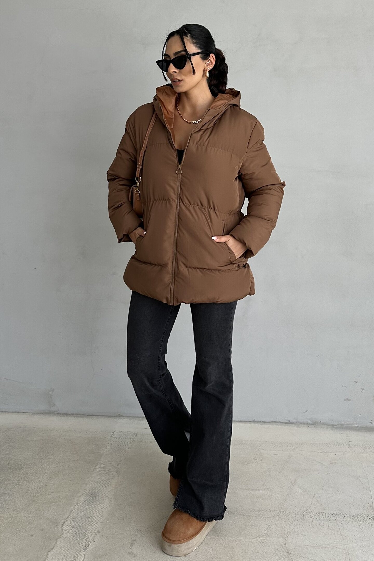 moda armanc Kadın Kahverengi Kapüşonlu Şişme Mont